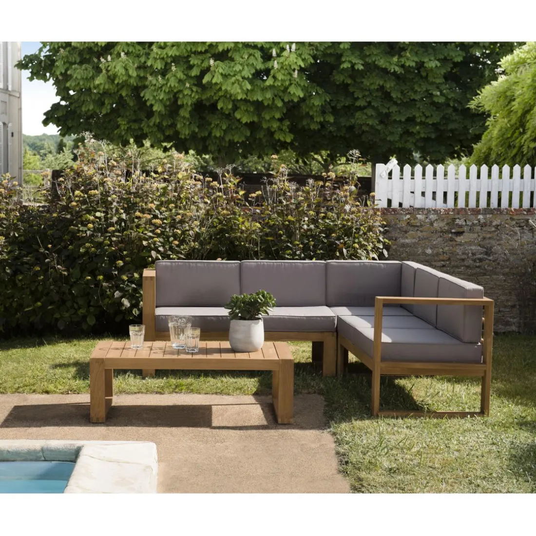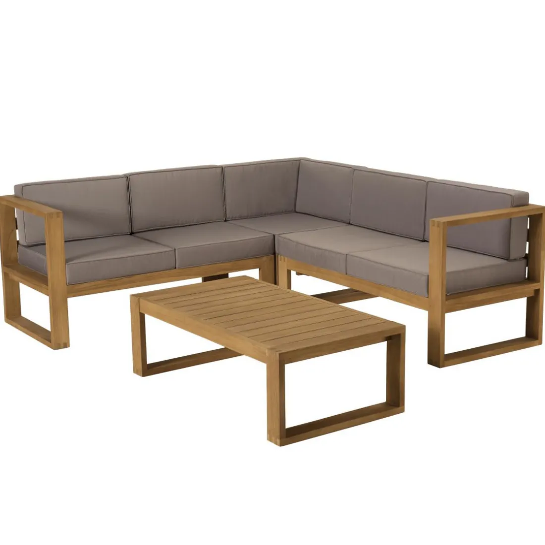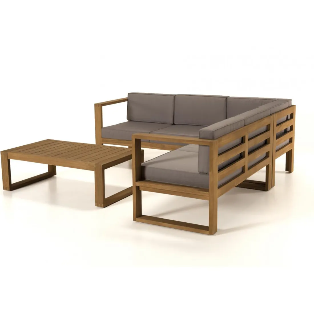 Caractéristiques Salon de jardin MINORQUE Table basse Teck + Canapé d’angle 5 places