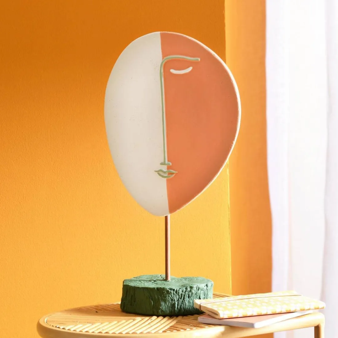 Promotion Sculpture visage en résine pied en métal Orange
