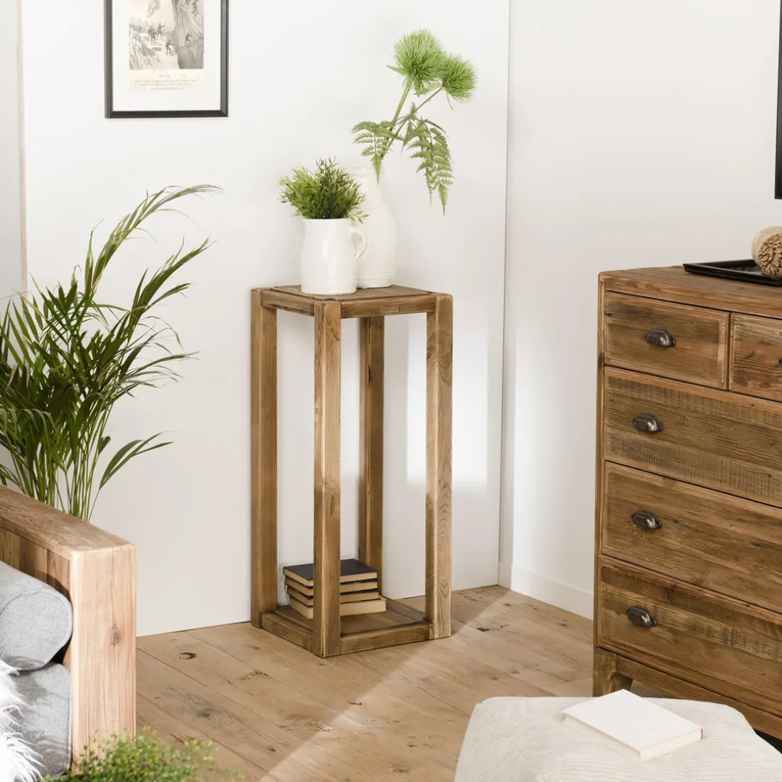 Faites de cette Sellette ANDRIAN Bois Pin Recyclé l’atout incontournable de votre décoration d’intérieur. Elle dispose de deux plateaux de forme carrée pour y exposer vos plantes ou autres objets décoratifs.