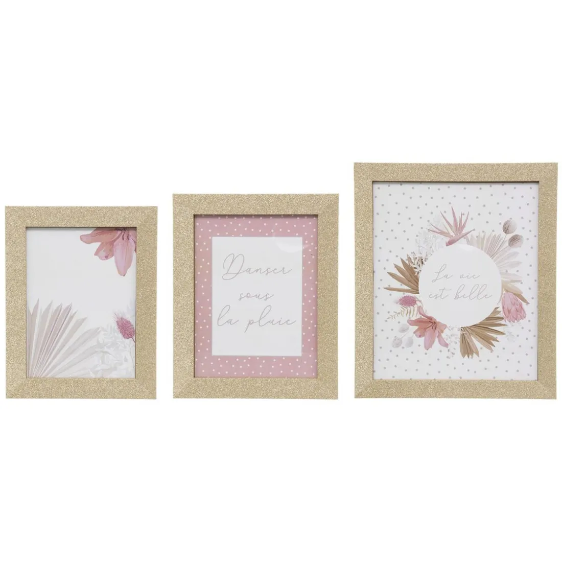Caractéristiques Set de 3 cadres photo pailletés