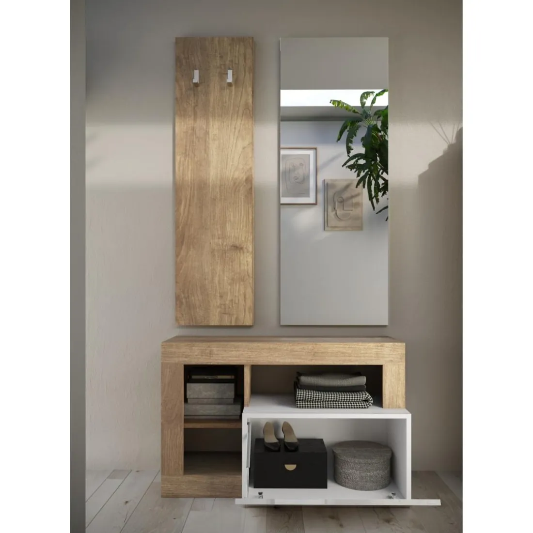 Caractéristiques Set de Meuble d’entrée comprenant 3 pieces : Meuble a chaussure et Miroir Porte manteau L91 cm