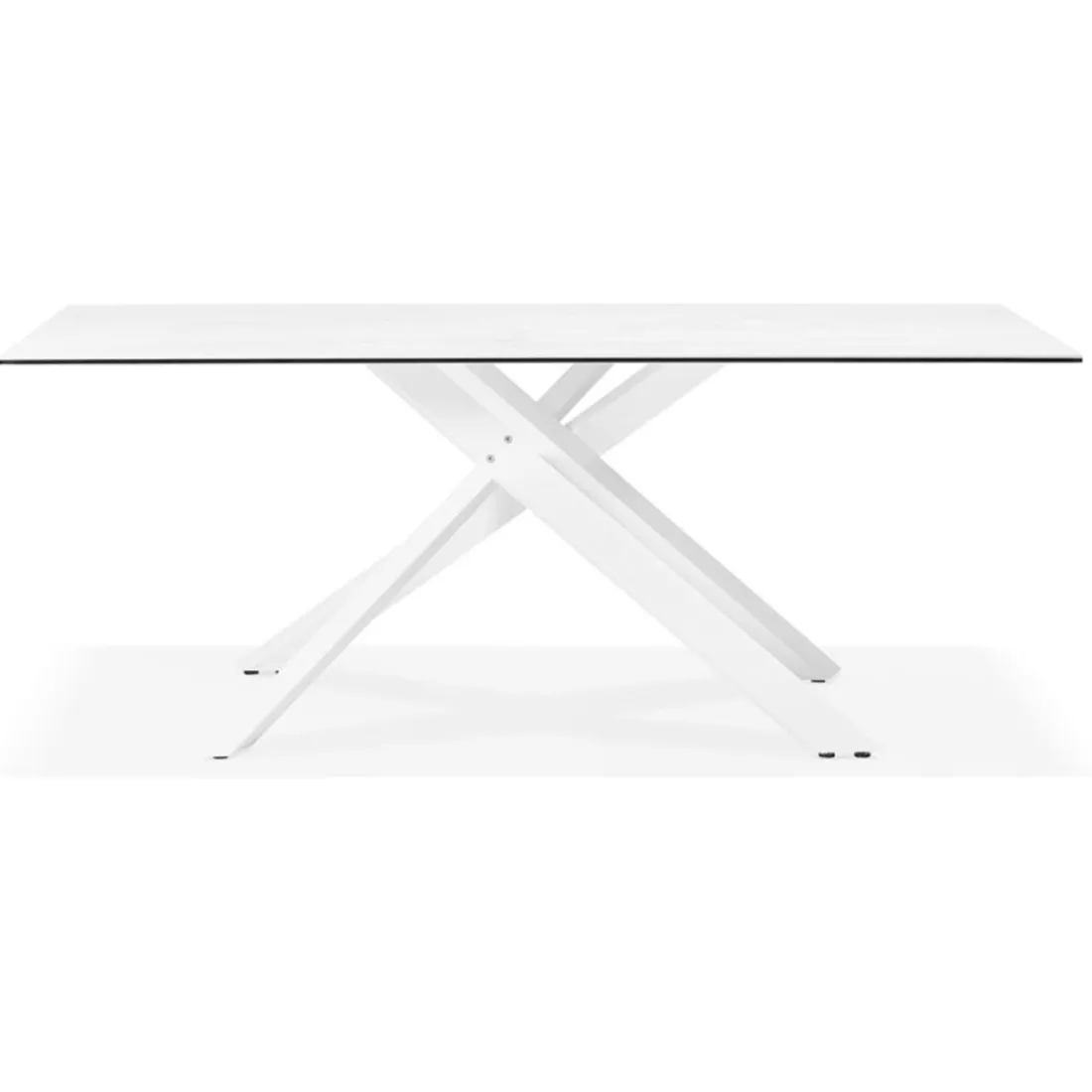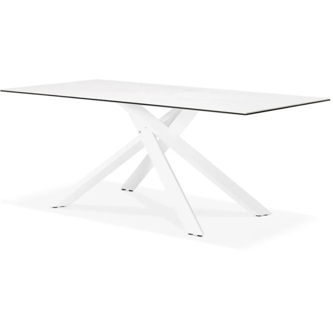 Découvrez la table à diner ‘MARKINA’, un produit raffiné de la gamme Alterego. Grâce à sa structure moderne, cette table se caractérise par sa robustesse et son design épuré. L’élément central de ce produit est son pied en X, une caractéristique qui lui confère une grande stabilité. Réalisé en métal, il donne non seulement une touche moderne, mais aussi une élégance incomparable. Le dessus de la table en céramique blanche apporte une touche de légèreté et de brillance à la pièce. Mesurant 180×90 cm, elle est de hauteur 76,5 cm, une taille parfaite pour accueillir généreusement vos convives. Enfin, la couleur Blanc de cette table symbolise la pureté et la simplicité, ajoutant une atmosphère apaisante à votre salle à manger.