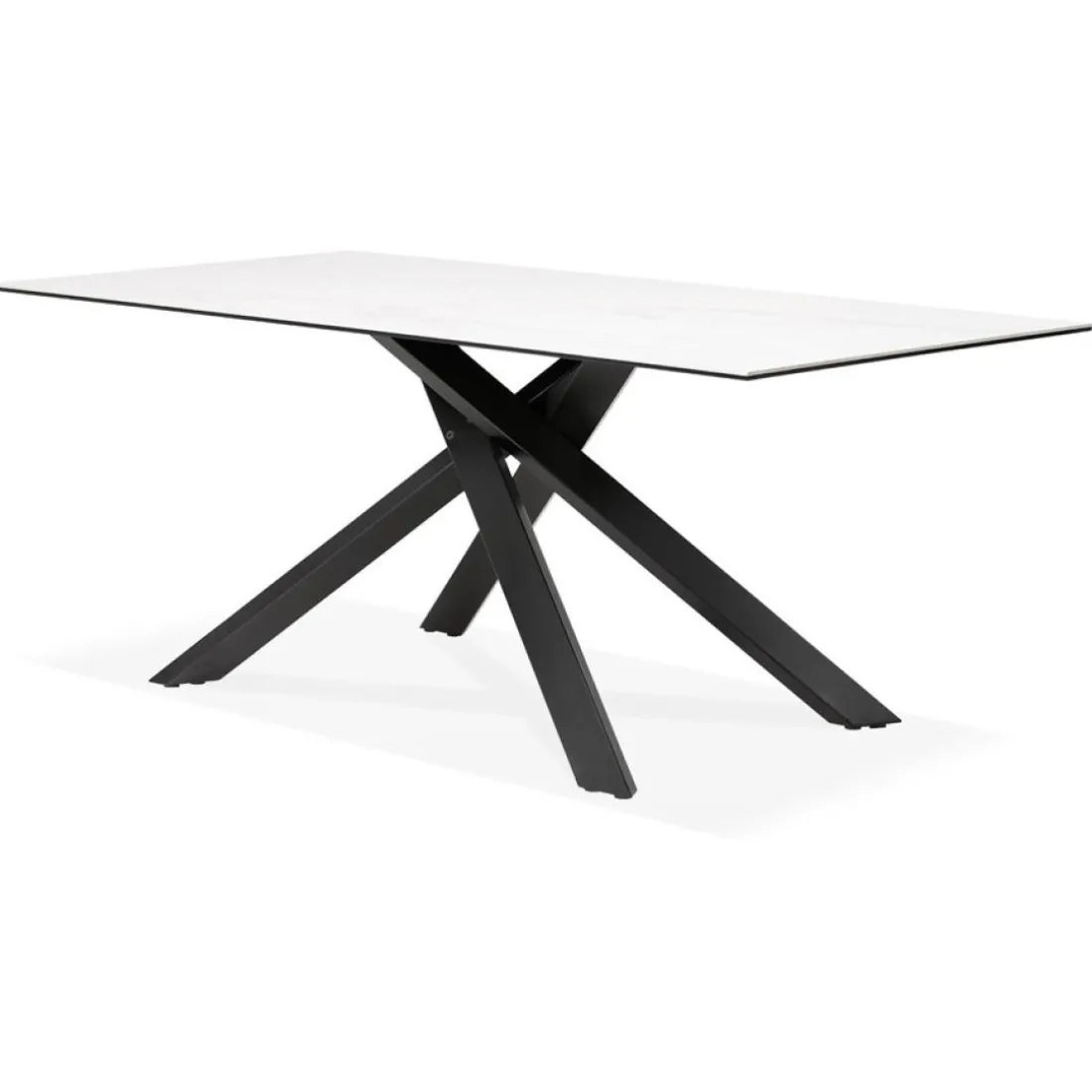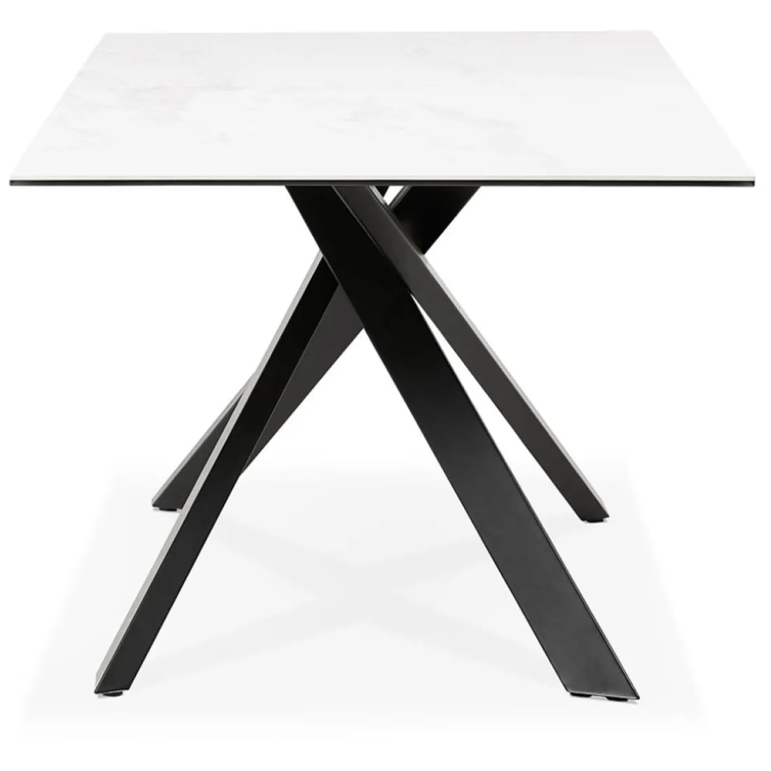 Caractéristiques Table à diner ‘MARKINA’ en céramique blanche avec pied central en x noir
