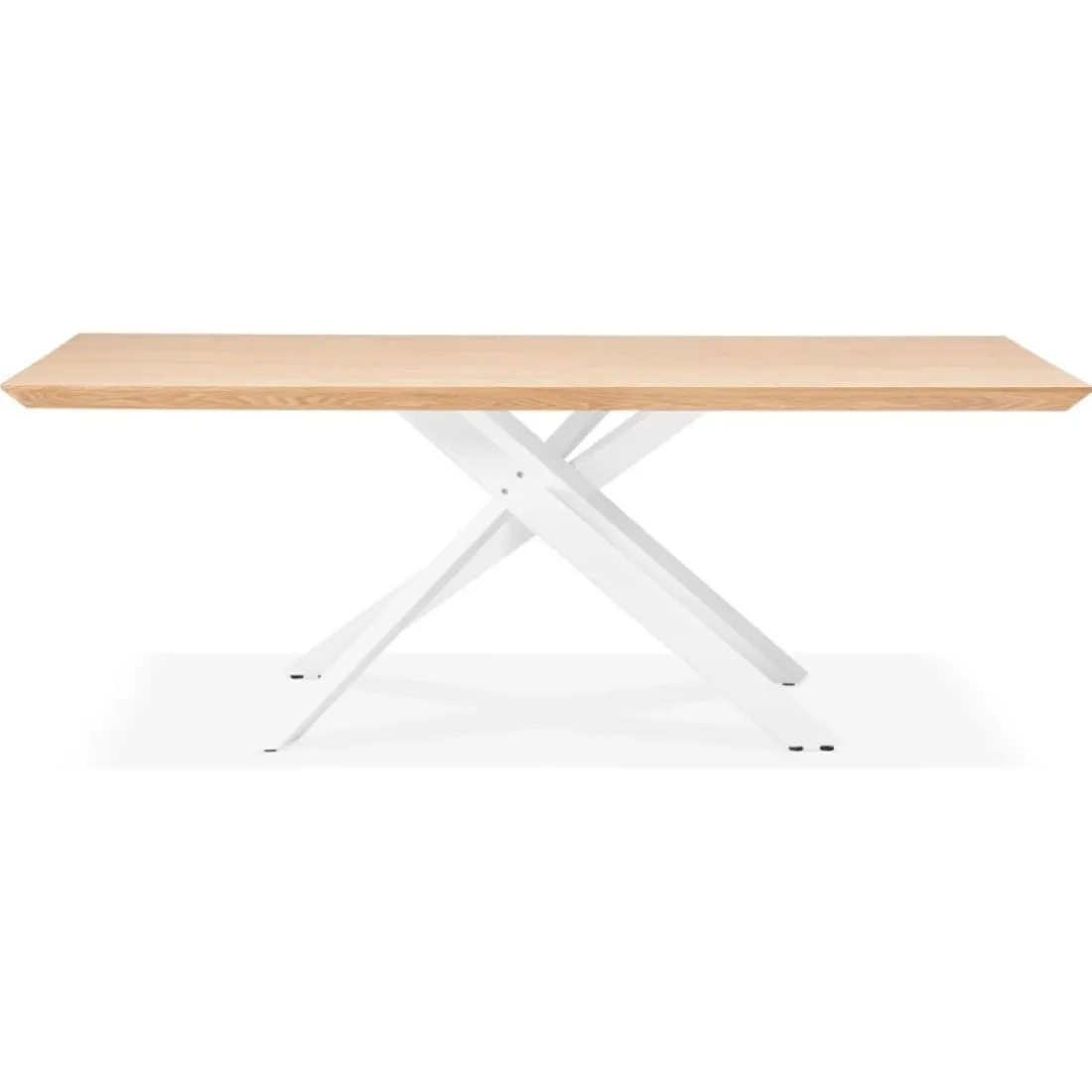 Caractéristiques Table à diner ‘WALABY’ en bois finition naturelle avec pied central en x blanc
