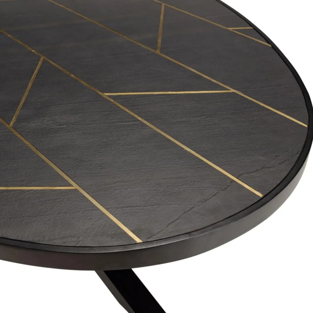 Caractéristiques Table à manger plateau ovale effet pierre motifs dorés BASILE