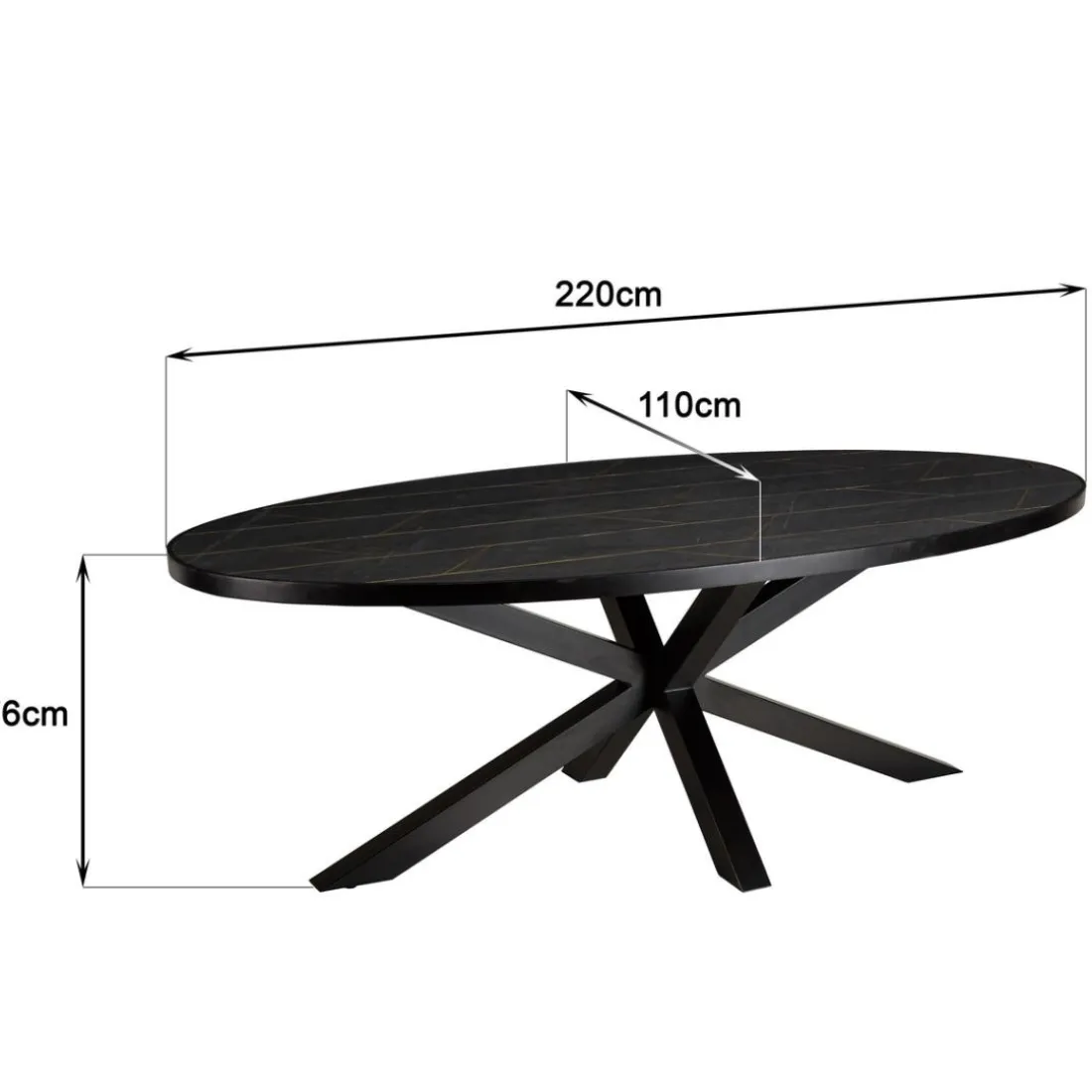 Distinguez votre espace de repas avec la table à manger ovale BASILE de marque MACABANE. Ce chef-d’œuvre ethnique arbore un plateau noir élégant avec un effet de pierre exquis et des motifs dorés distinctifs. Elle mesure 76cm de hauteur et 220cm de longueur, offrant amplement d’espace pour un repas confortable. Réalisée en contreplaqué (MDF), sa robustesse et sa durabilité ne sont pas en reste. Sa couleur noire ajoute une touche de sophistication à votre salle à manger.