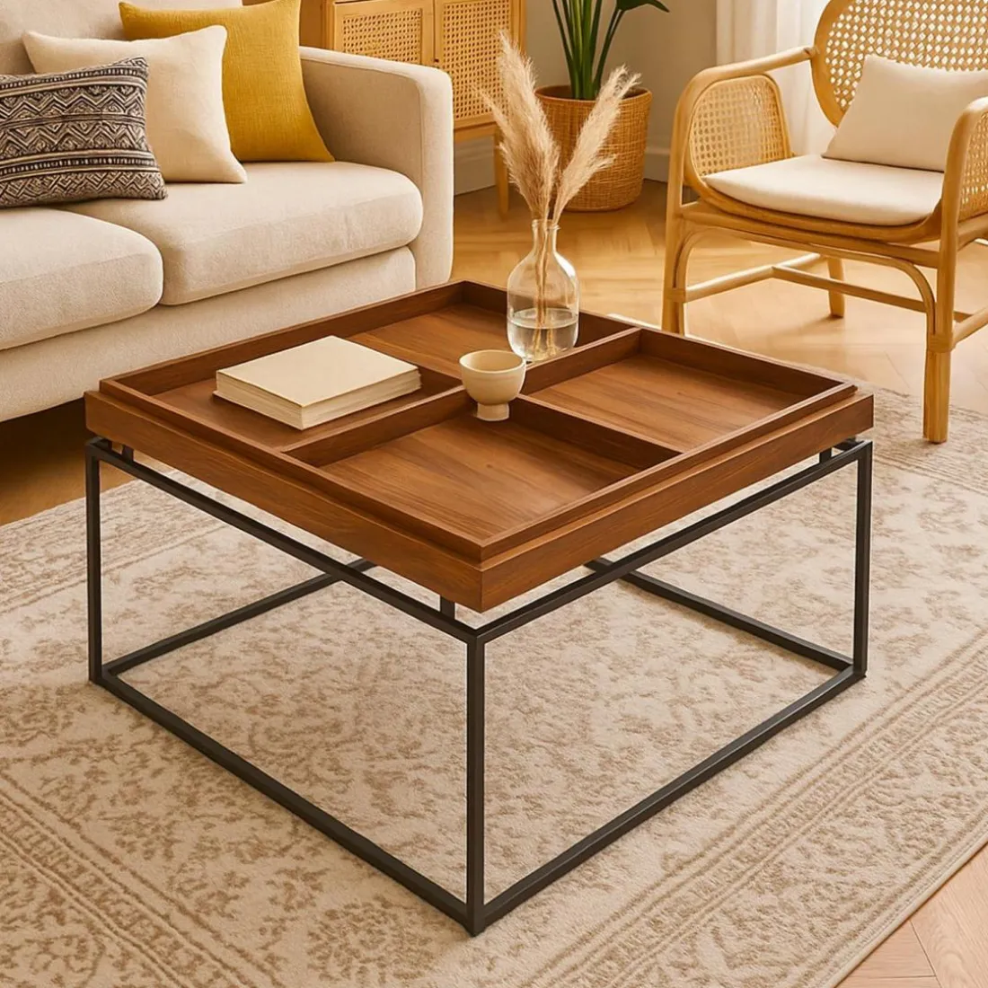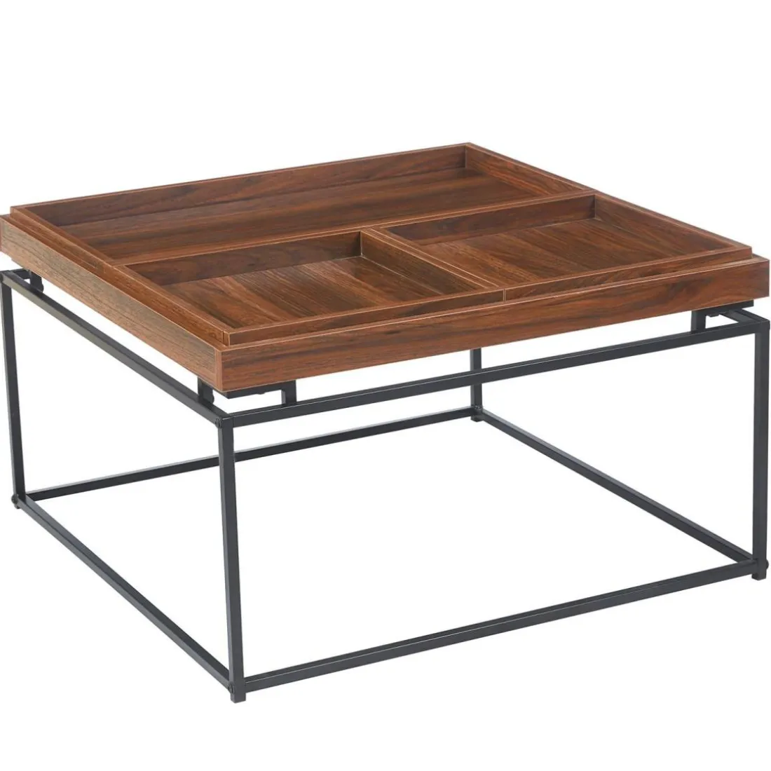 Caractéristiques Table basse carrée avec plateau compartimenté réversible Duplix Bois Noisette