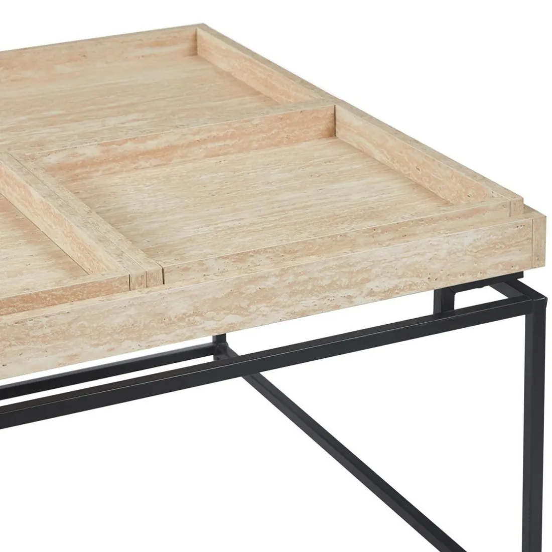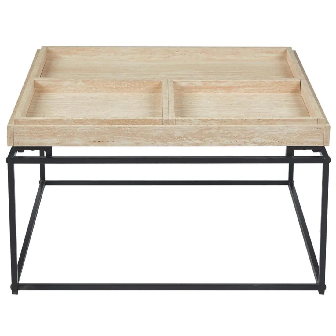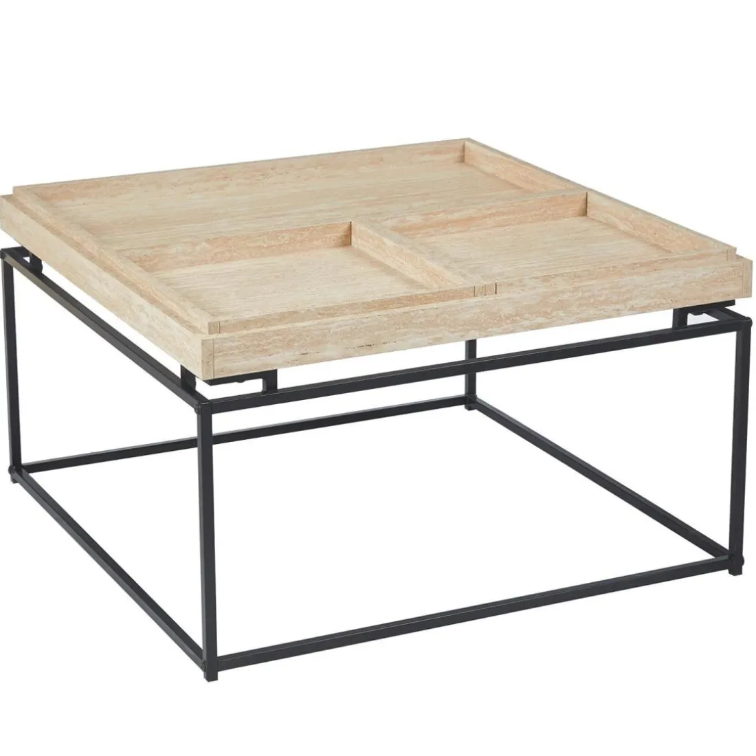 Caractéristiques Table basse carrée avec plateau compartimenté réversible Duplix Effet Travertin Beige