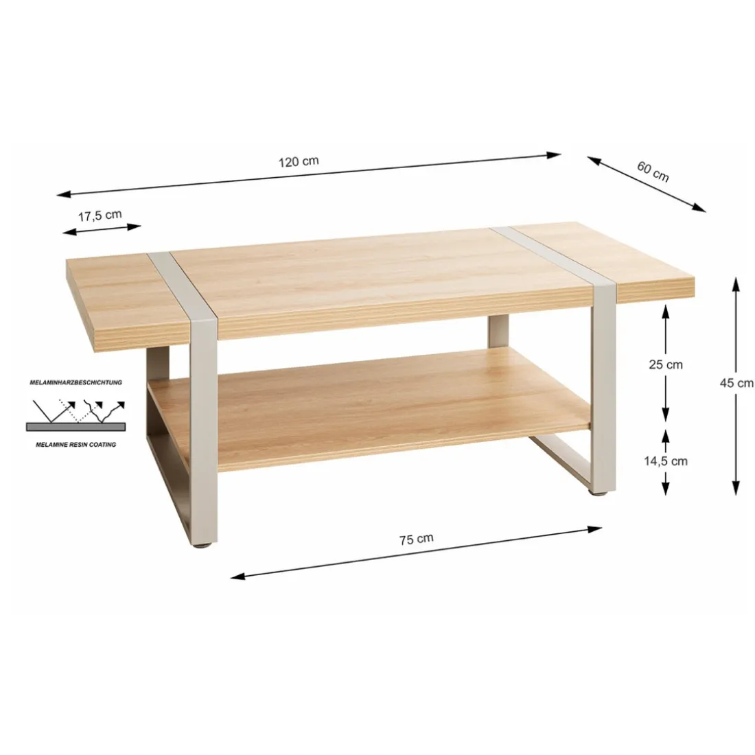 Découvrez la remarquable table basse de marque 3S. x Home, associant habilement l’authenticité à la modernité. Présentant des dimensions de 120 cm de long pour une hauteur de 45 cm, ce mobilier se distingue par son subtil mariage de couleurs où l’élégance du gris cachemire se mêle à la chaleur du chêne naturel. Le piètement de la table, fabriqué en tube d’acier, a été soigneusement peint par poudrage pour garantir un rendu visuel parfait. De plus, les étagères en panneau de particules arborent un décor chêne naturel qui renforce son cachet authentique. Appréciez l’attention portée aux détails comme le design minimaliste de sa structure qui s’accorde parfaitement à son style robuste et intemporel.