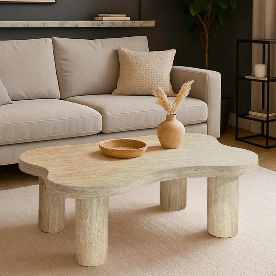 Caractéristiques Table basse forme nuage Lagoon Effet Travertin Beige