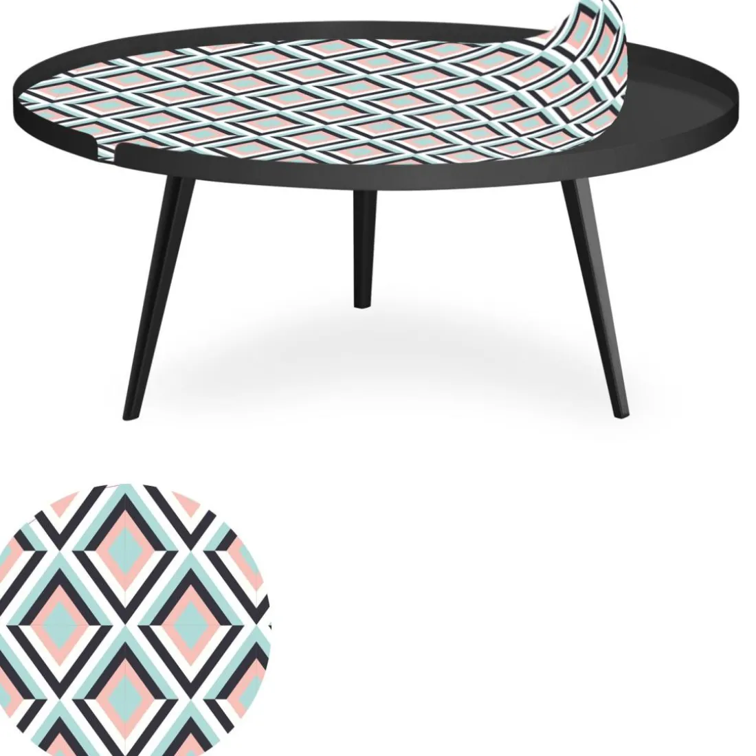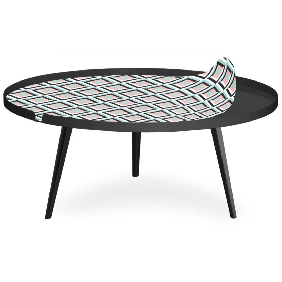 Caractéristiques Table basse magnétique ronde à rebord Bipolart Métal Noir avec 1 Top Losanges