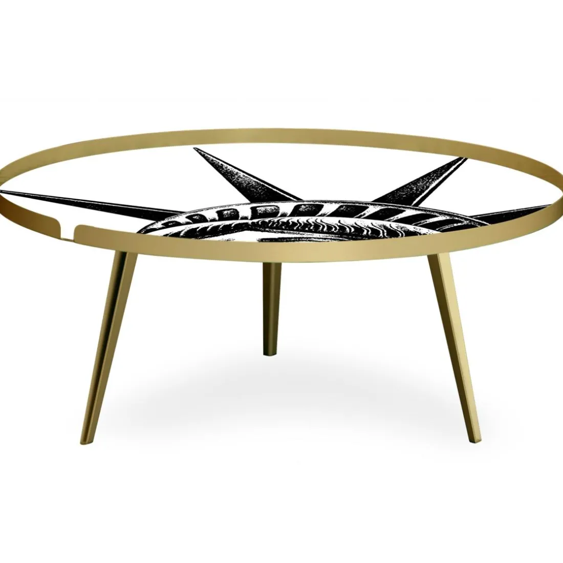 Caractéristiques Table basse magnétique ronde à rebord Bipolart Métal Or avec 2 Tops style Fun
