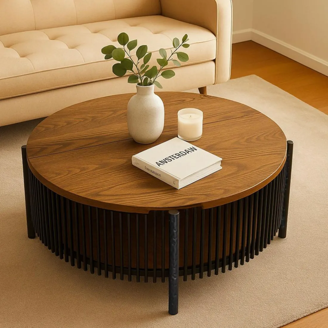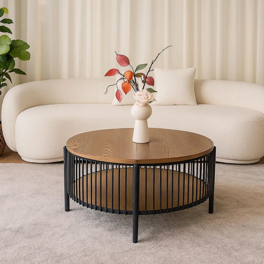 Caractéristiques Table basse ronde avec rangement Curcuma Bois et Métal mareté Noir