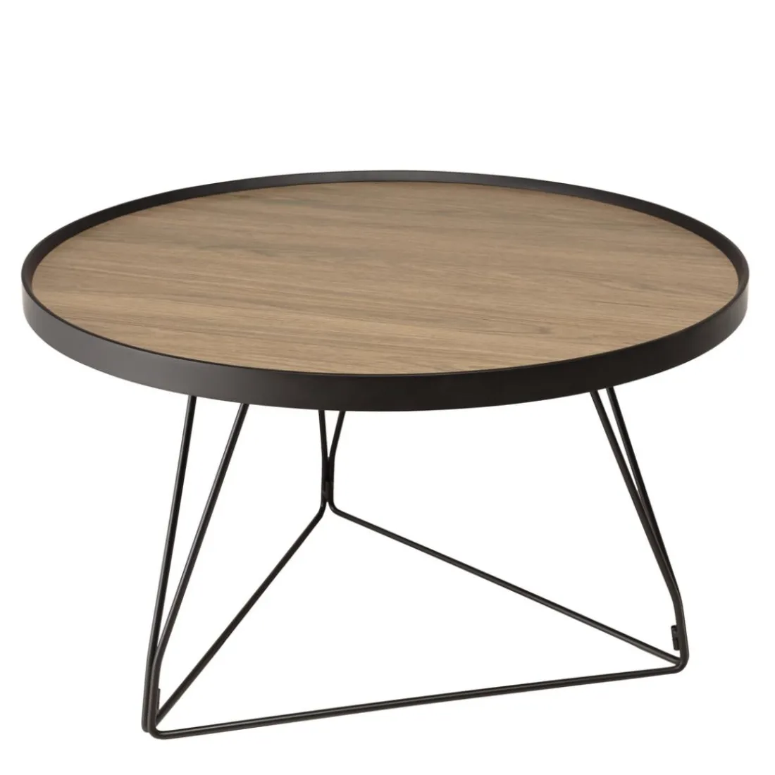 Caractéristiques Table basse ronde mocha pieds épingles métal noir JULIA