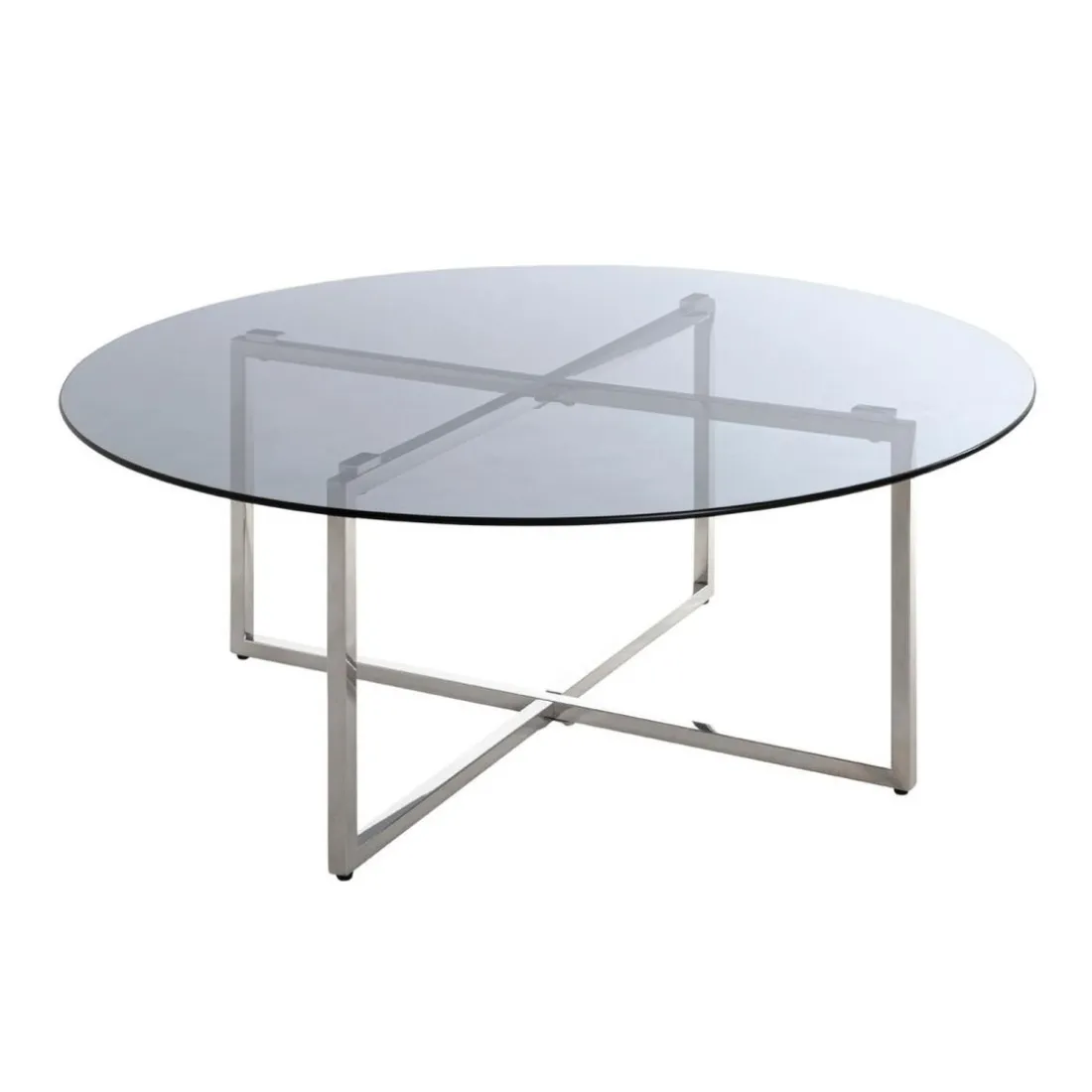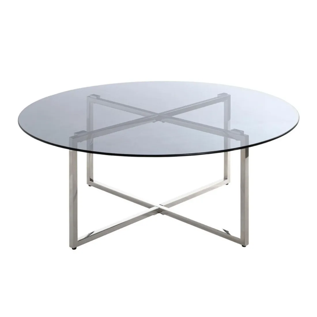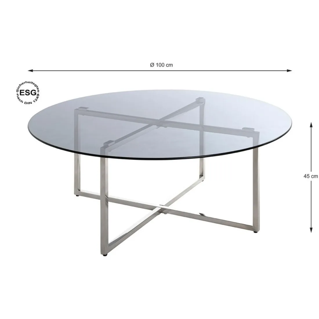 Structure en inox brillant, plateau en verre trempé teinté gris (Floatglass)