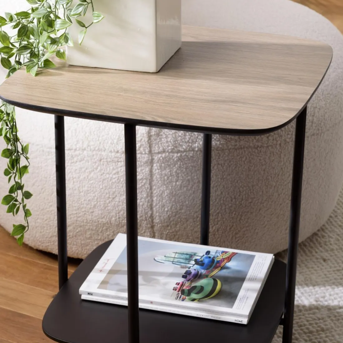 Caractéristiques Table d’appoint 2 plateaux bi-matière pieds métal JULIA