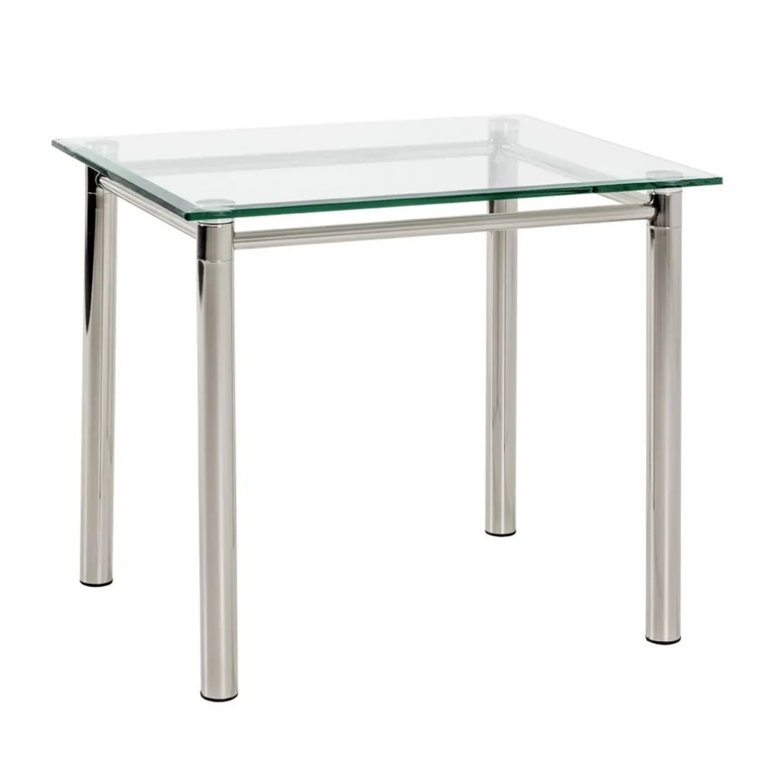 Caractéristiques Table d’appoint acier chromé poli plateau en verre trempé
