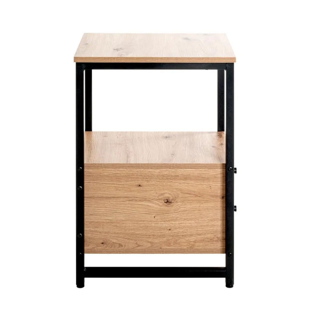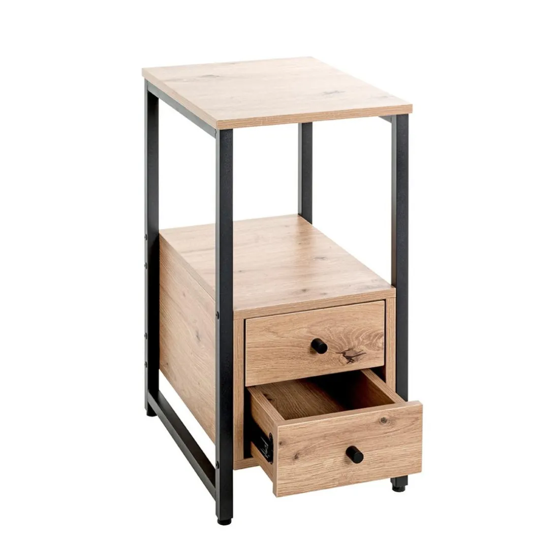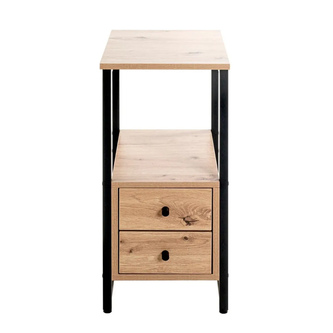 Caractéristiques Table d’appoint avec deux tiroirs métal et bois