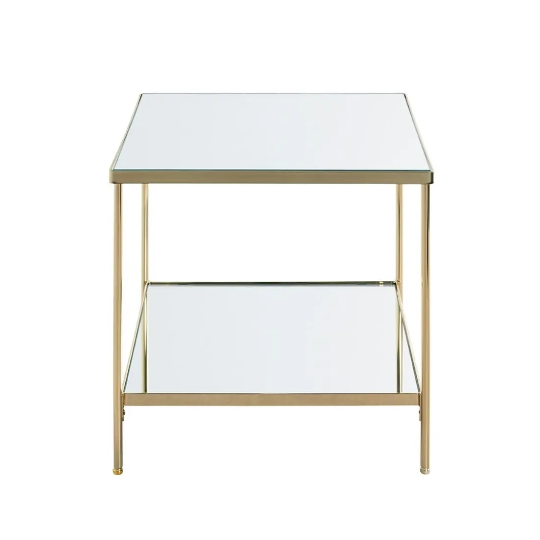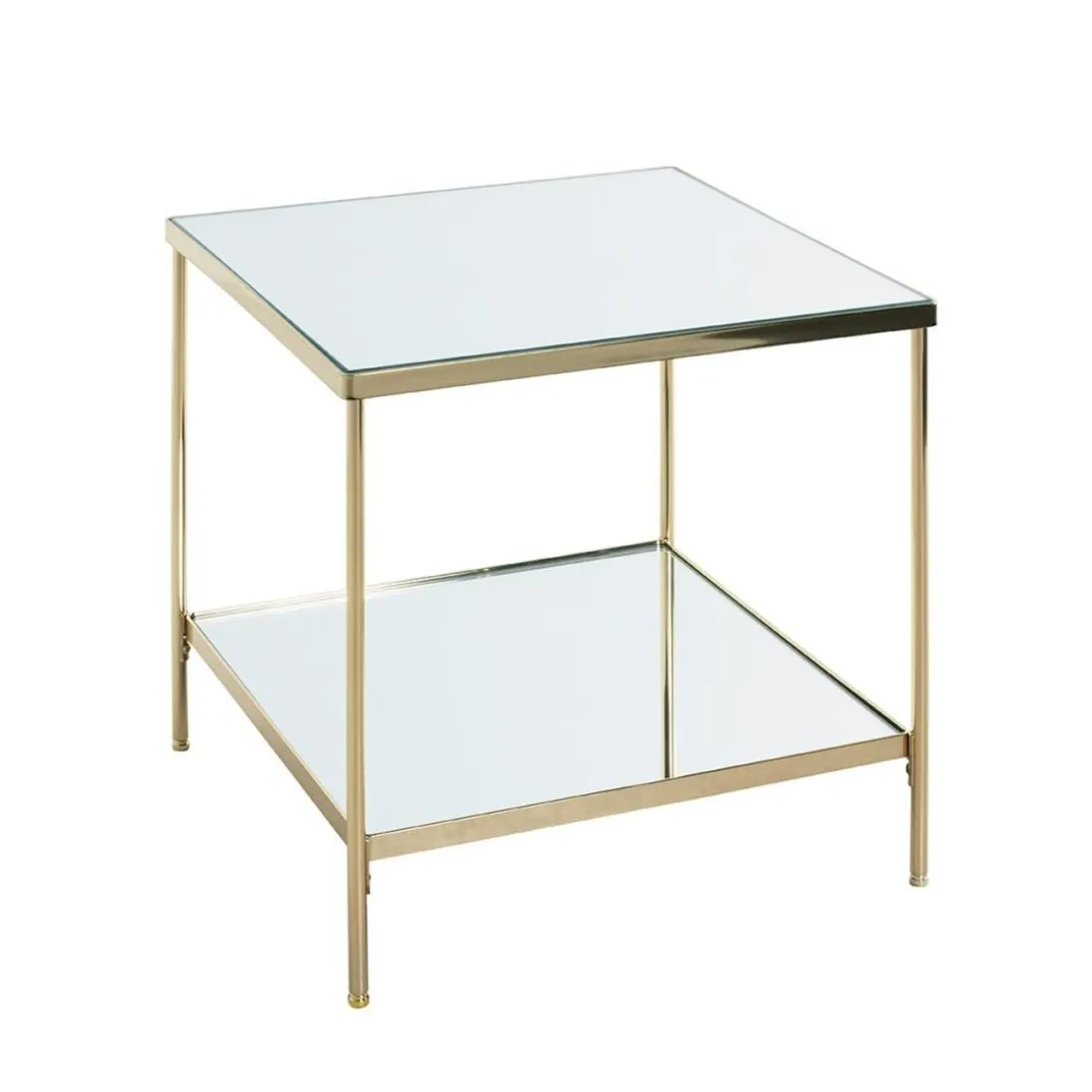 Caractéristiques Table d’appoint en acier laitonné et étagères en verre miroir