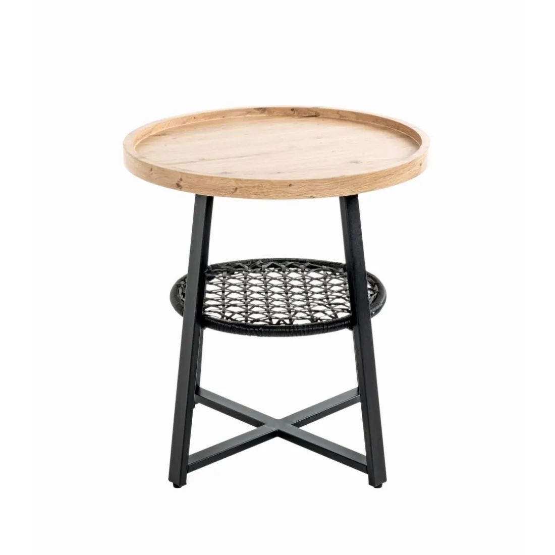 Caractéristiques Table d’appoint en noir, plateau en MDF décor chêne