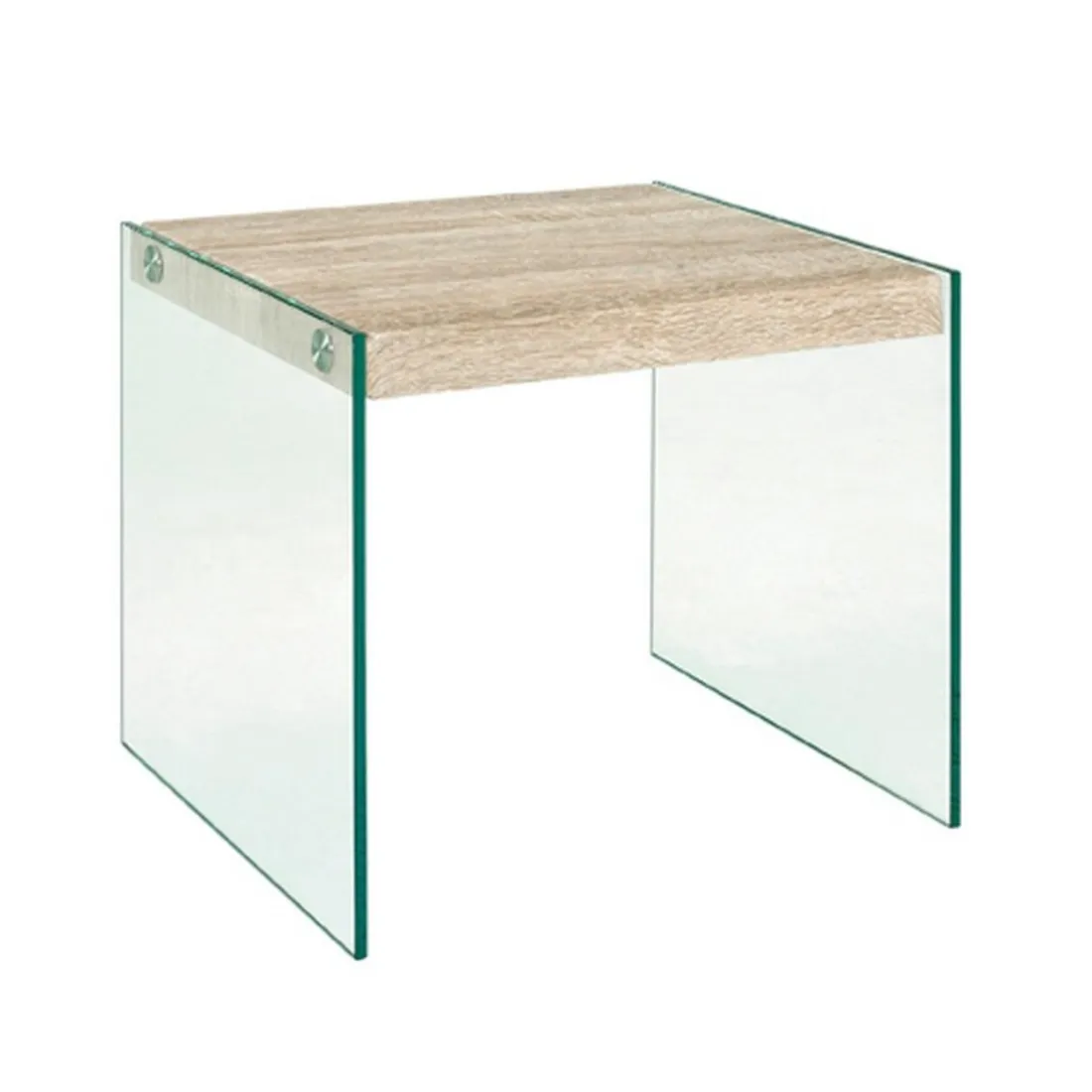 Caractéristiques Table d’appoint en verre avec plateau décor chène