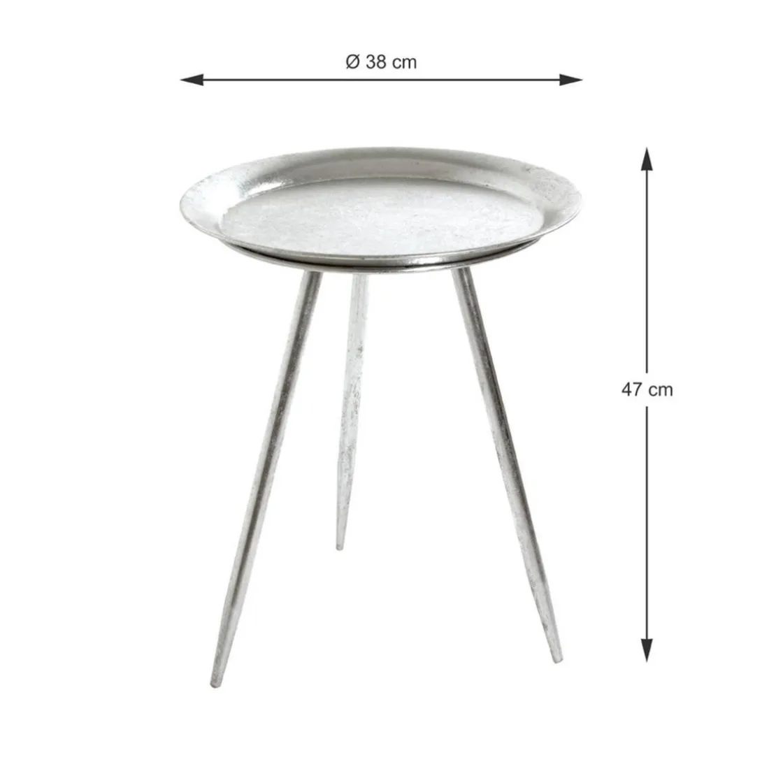 Caractéristiques Table d’appoint métal laqué argent petit modèle