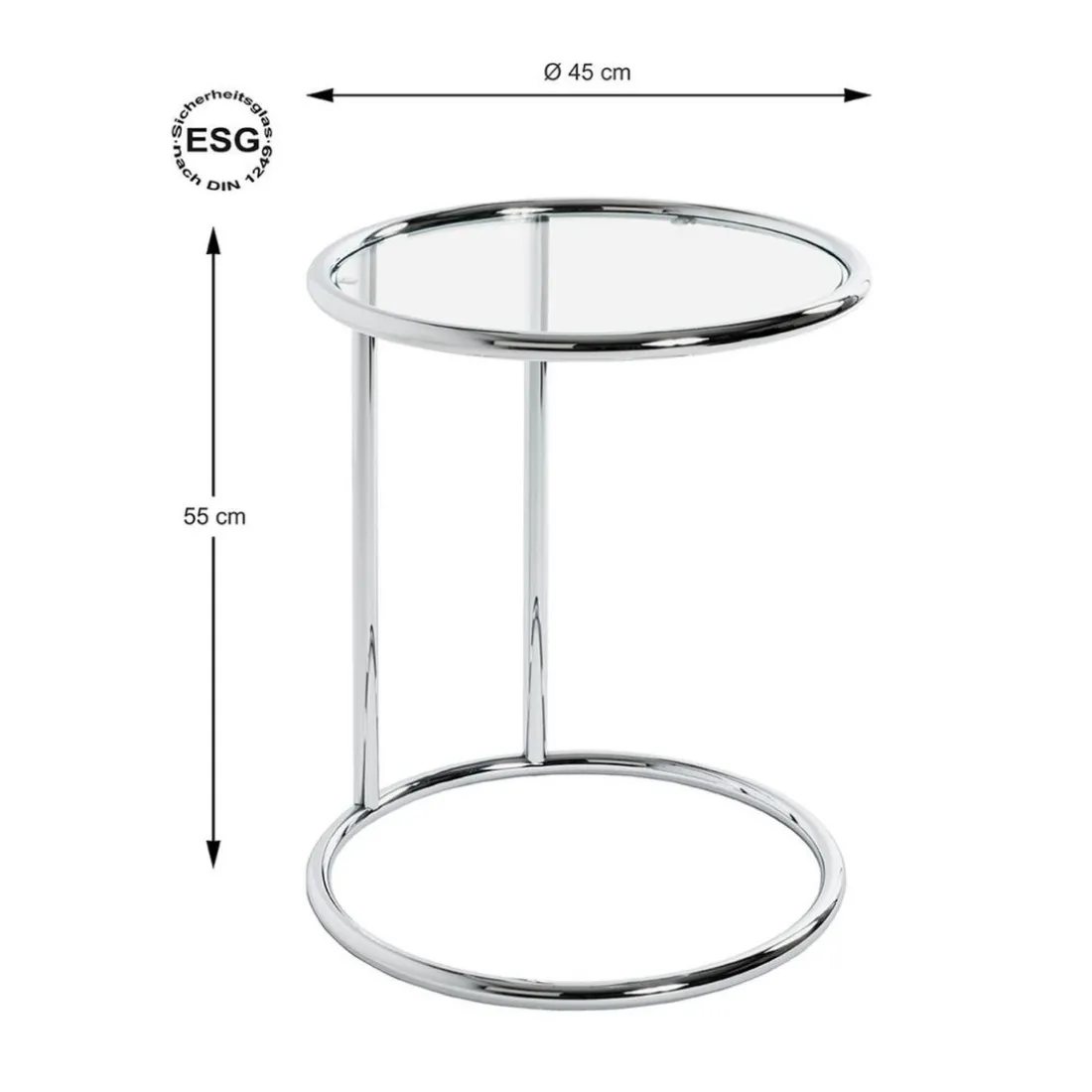 Caractéristiques Table d’appoint ronde chromé plateau verre trempé