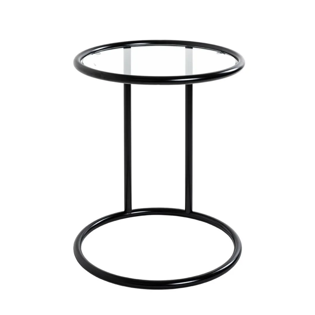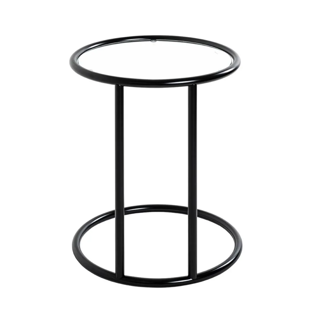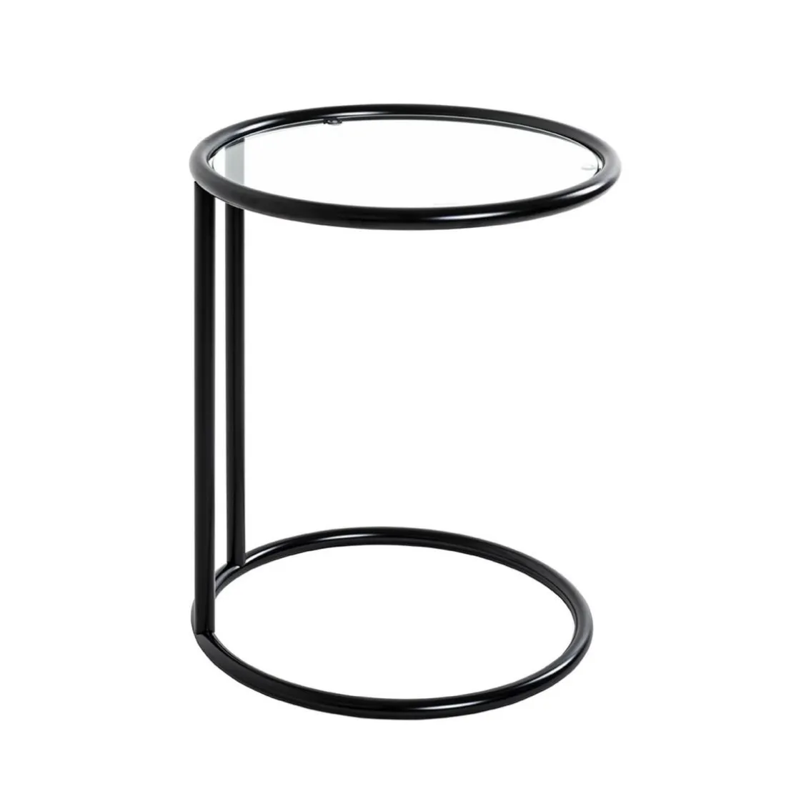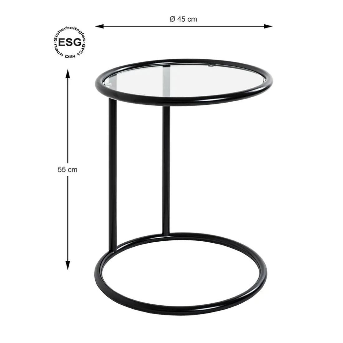 Caractéristiques Table d’appoint ronde laquée noir mat plateau verre trempé