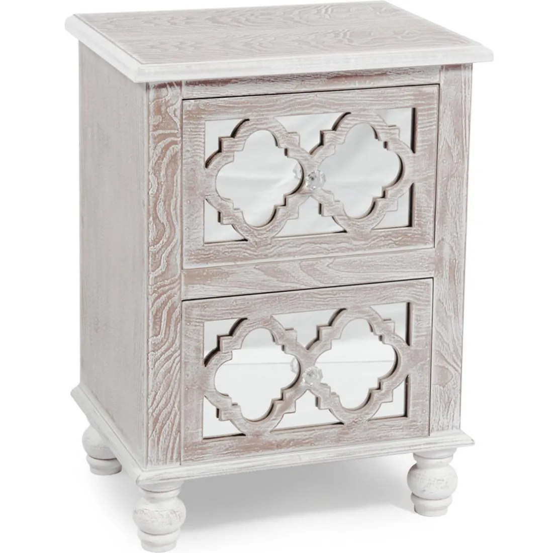 La Table De Chevet 2 Tiroirs Bois Patiné MAMA accorde avec style la modernité du miroir et la mélancolie joyeuse du bois patiné. Vous pourrez y ranger vos lectures du soir et y déposer une lampe de chevet aux tonalités métallisées, pour parfaire cette ambiance aux tonalités orientales.