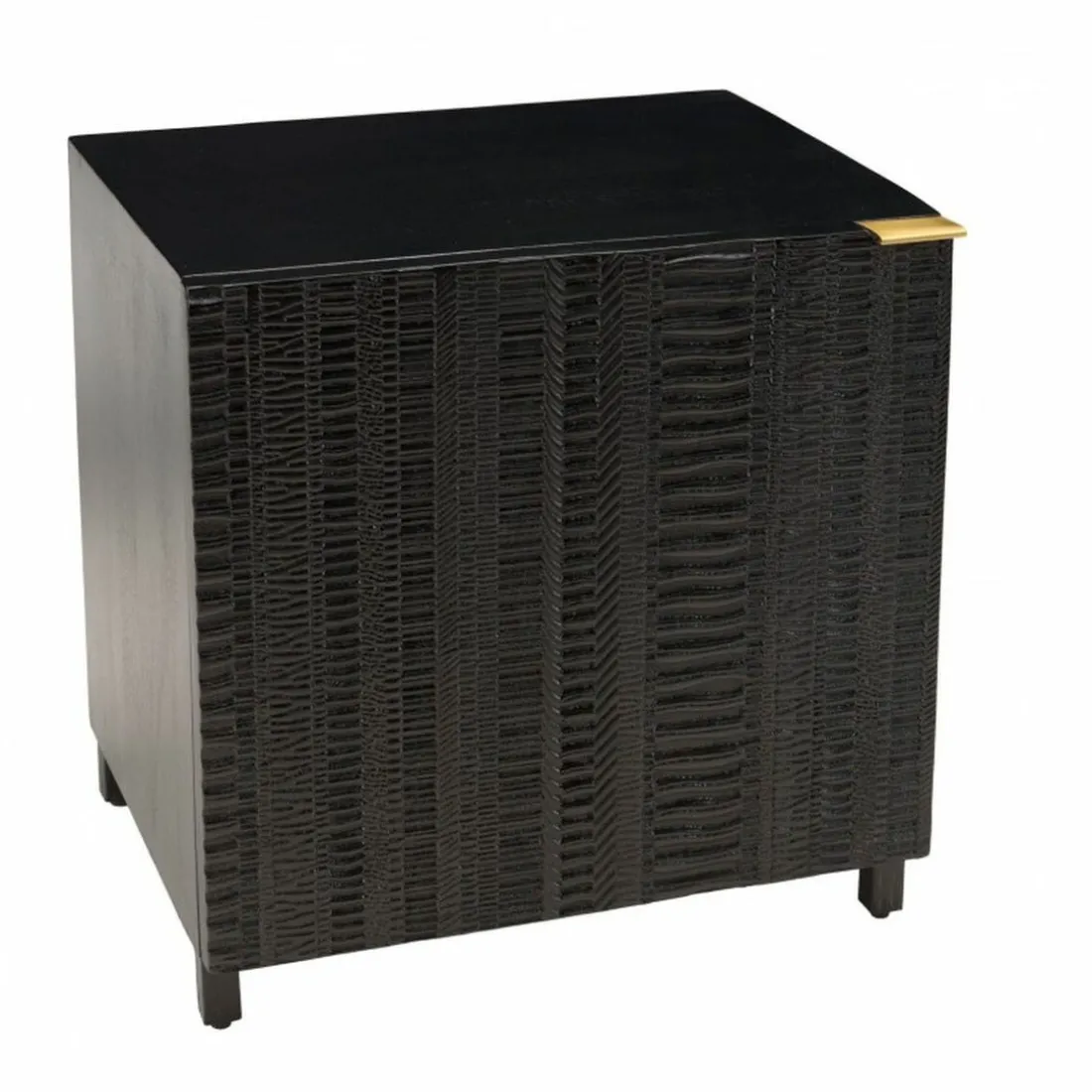 La table de chevet GLORIA de la marque MACABANE est un joyau noir. Un design moderne et raffiné s’offre à vous avec cette table de chevet mêlant le bois de manguier massif et le métal. La teinte Noire des pieds en métal contraste parfaitement avec ses nuances chaudes, donnant un aspect élégant et luxueux à la pièce. Elle est équipée d’une porte sculptée, donnant un côté artistique à l’ensemble.