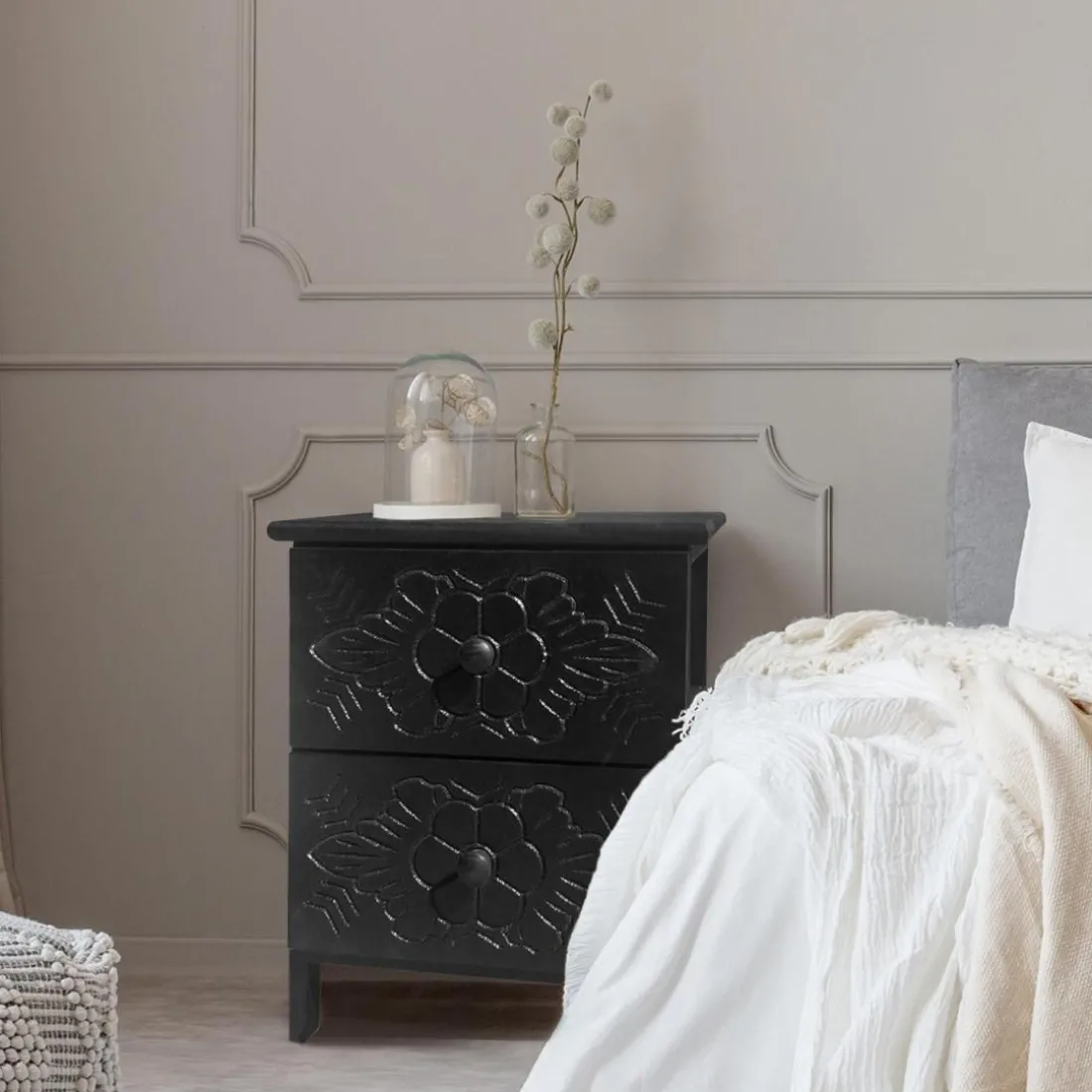 Caractéristiques Table de chevet sculptée style marocain Chevignon Bois Noir