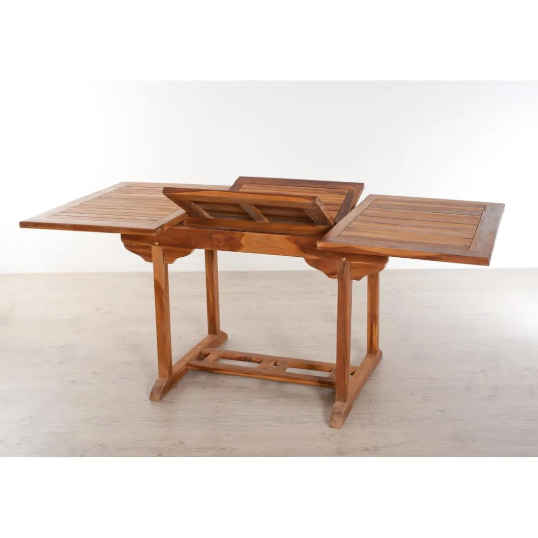 Table rectangulaire extensible 120/180 x 90 cm en teck huilé . Article en Teck en provenance d’Indonésie.