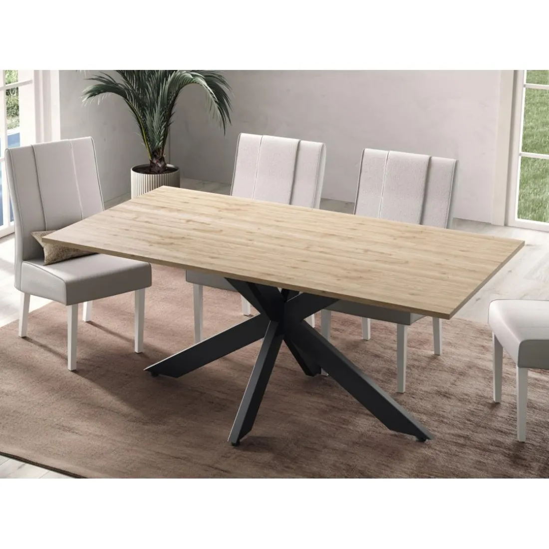 Découvrez la table de repas SPIDER de la marque 3S. x Home, appartenant à la catégorie Table salle à manger. Avec ses dimensions généreuses (Hauteur: 90, Longueur: 180), elle accueillera aisément vos convives. La table SPIDER est dotée de pieds en métal, assurant une stabilité sans faille. Son plateau est conçu en robuste panneau de particules de couleur beige, apportant un style raffiné et authentique à votre intérieur. À noter l’aspect délicatement grainé du plateau, détail visible sur l’image fournie, ajoutant du relief à l’ensemble.