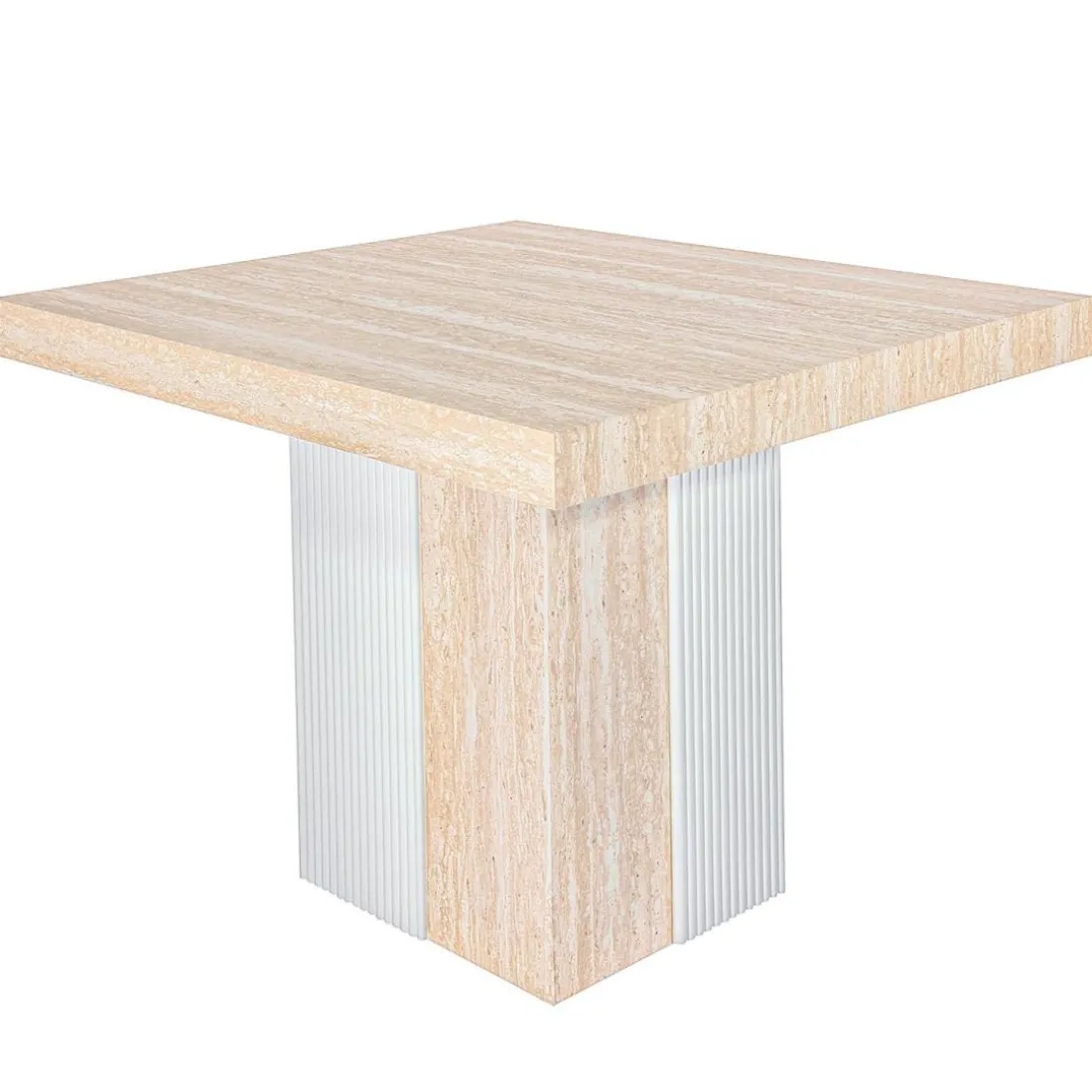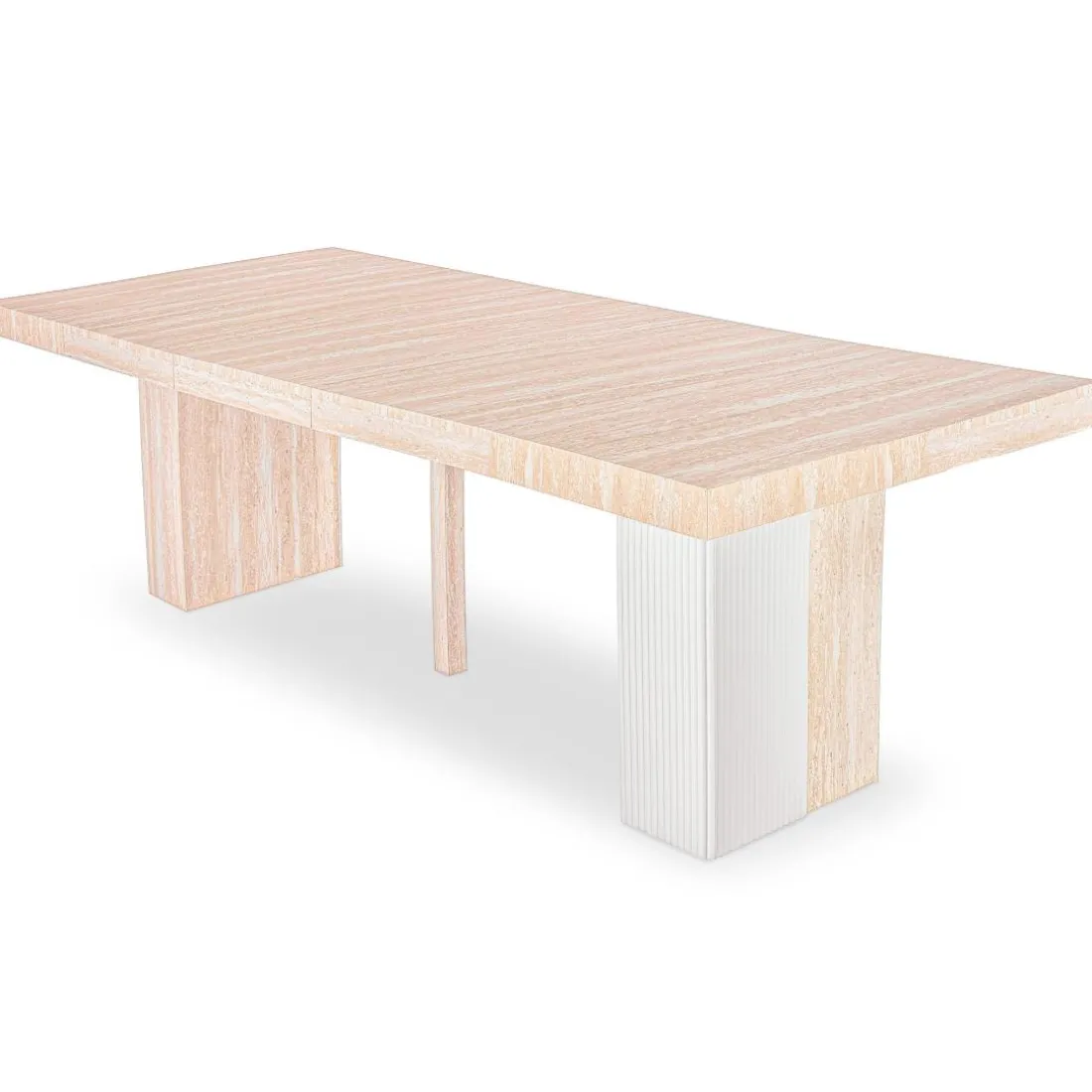 Caractéristiques Table rectangulaire extensible Virzon Effet Travertin Beige et rainurage Blanc