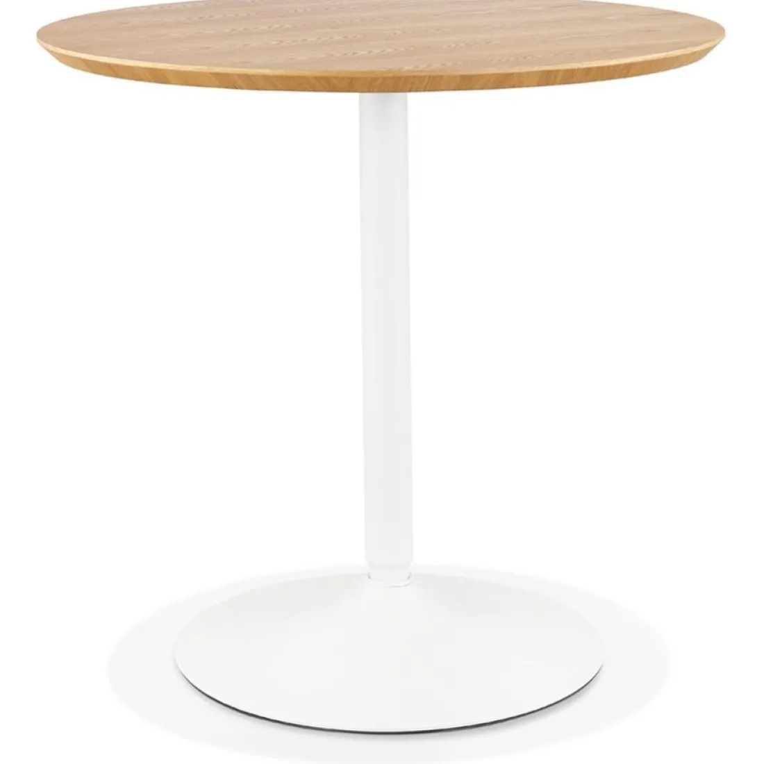 Caractéristiques Table ronde design ‘HUSH’ en bois finition naturelle et métal blanc