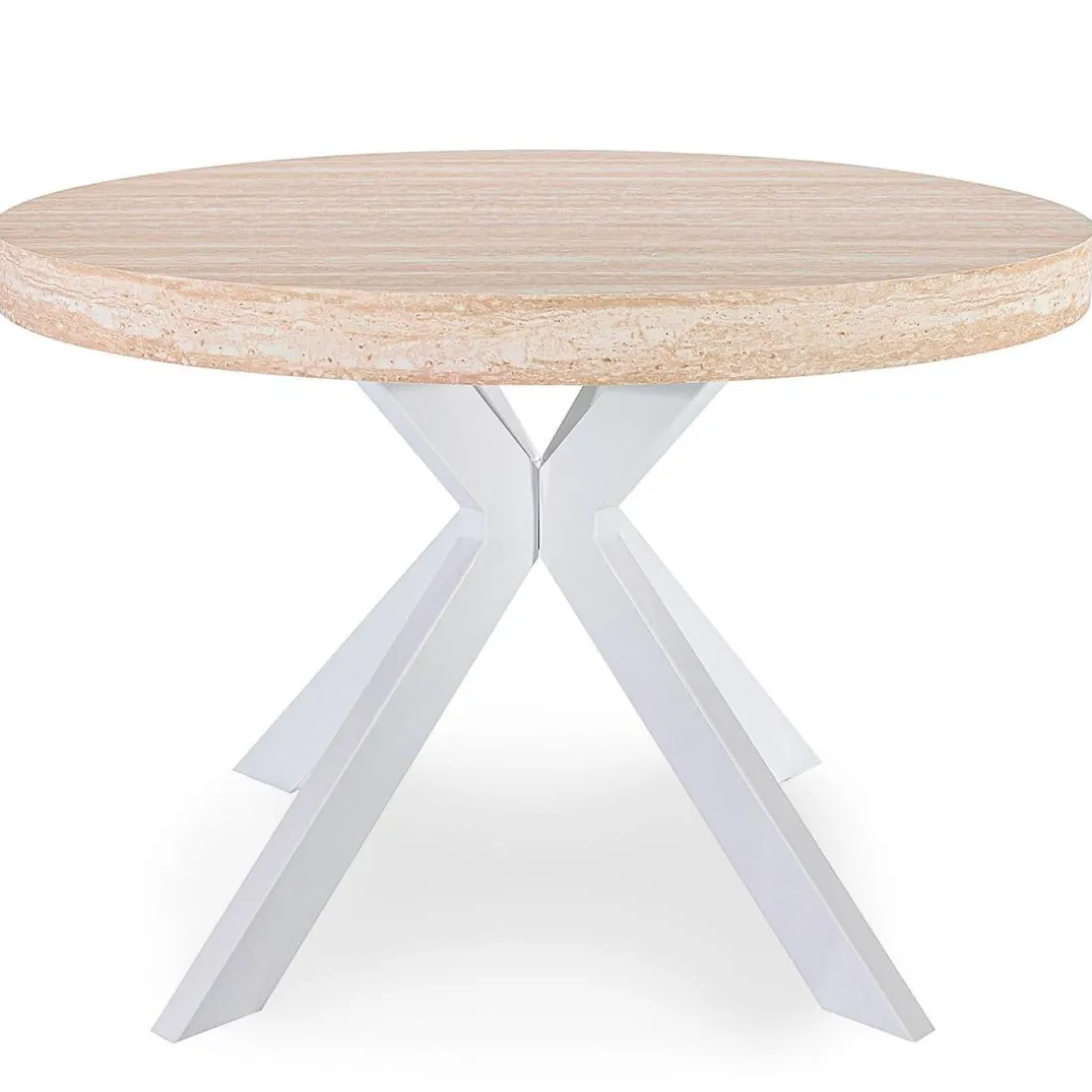 Caractéristiques Table ronde extensible Myriade Effet travertin Beige et Blanc