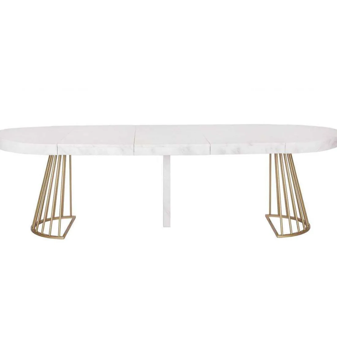 Caractéristiques Table Ronde Extensible SORA Effet Marbre Pieds Or