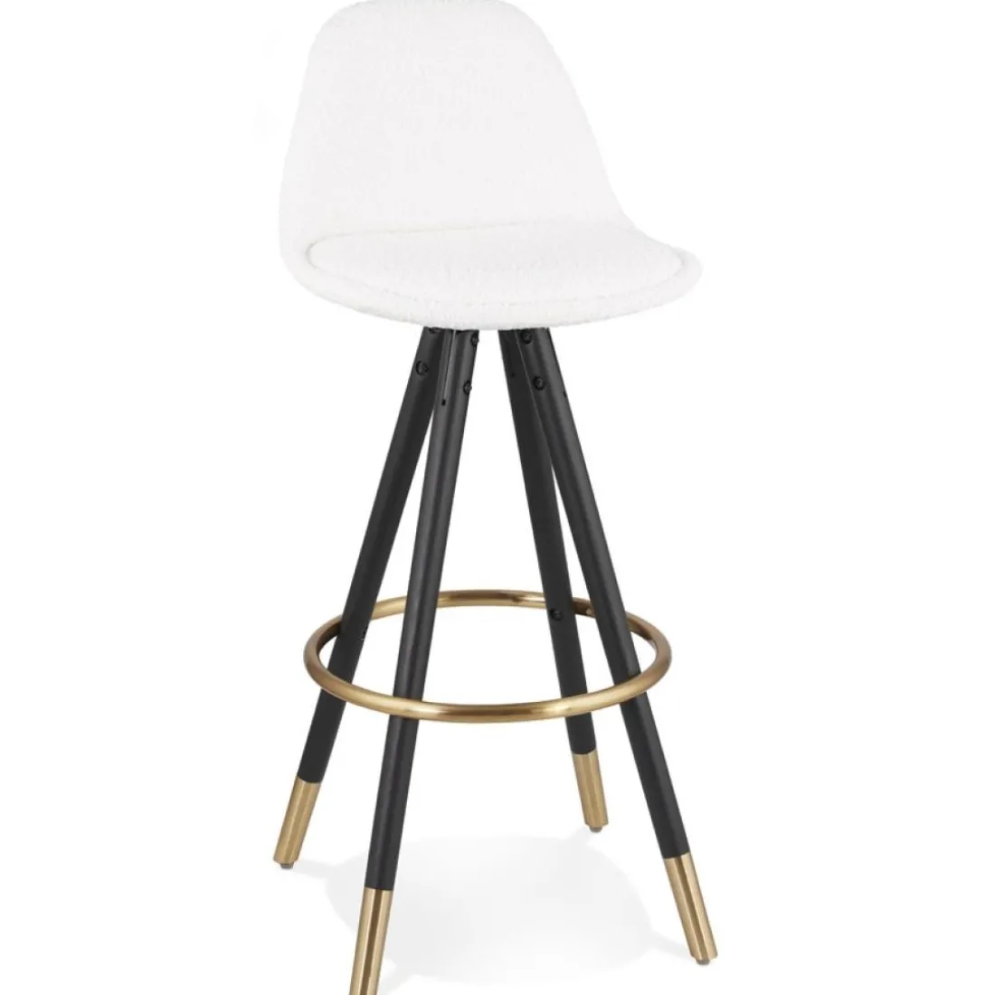 Caractéristiques Tabouret de bar ‘CLARISSE’ en tissu bouloché blanc et 4 pieds en bois noir
