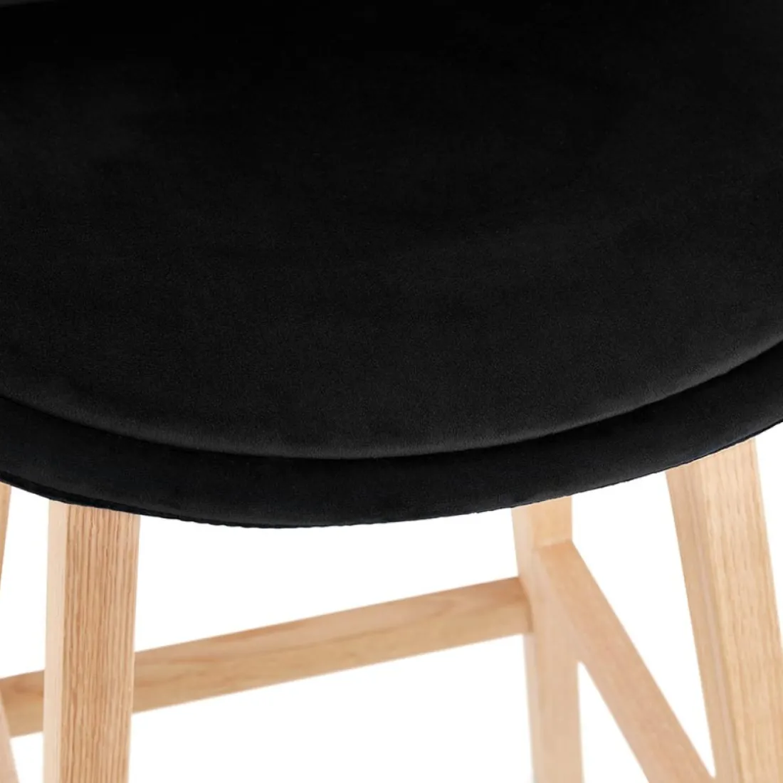 Caractéristiques Tabouret de bar ‘MORISS’ en velours noir et pieds en bois naturel