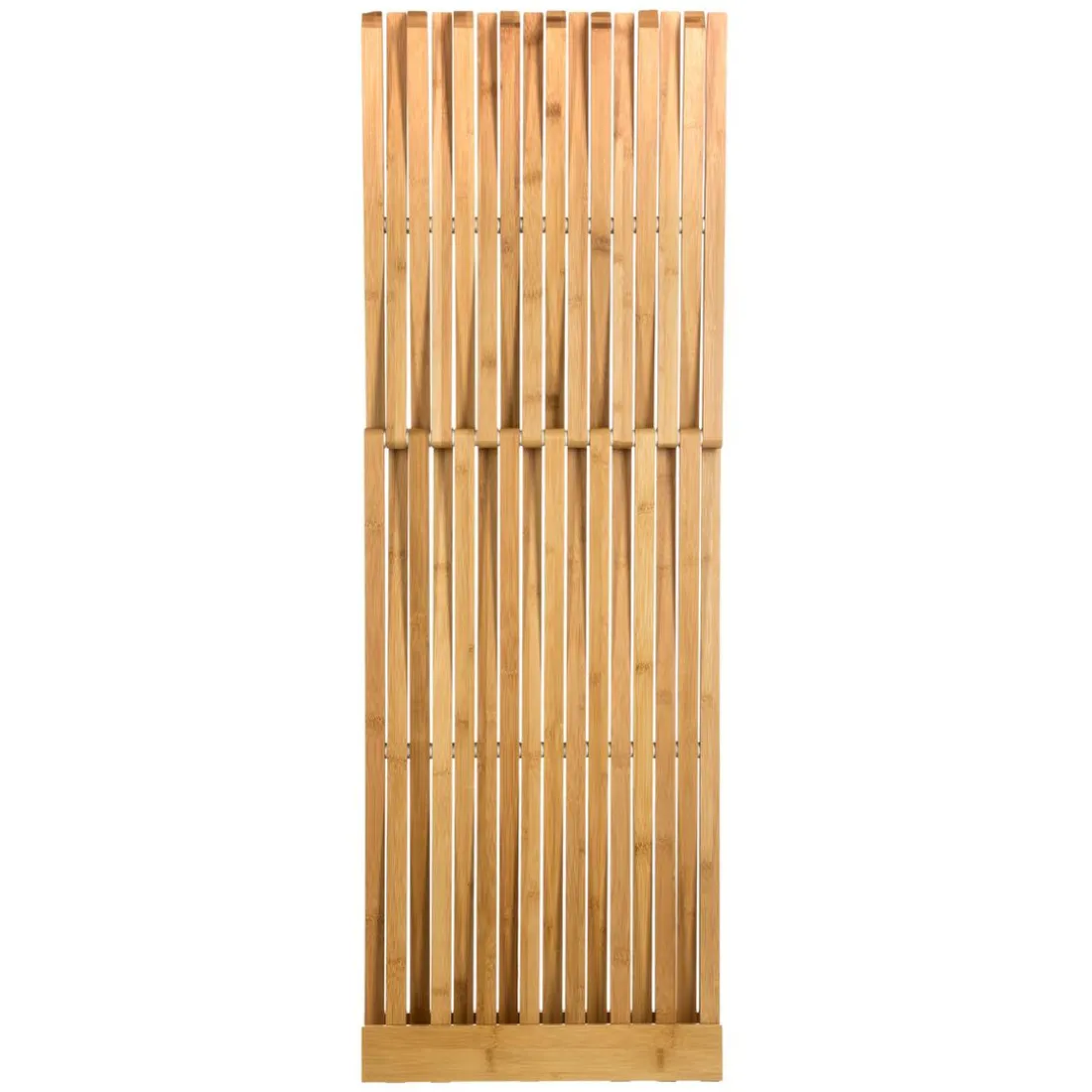 Placé dans la salle de bain, ce Tabouret pliant d’appoint bambou apporte praticité et élégance. Sous l’assise est placée une niche triangulaire pour ranger les linges de maison ou les magazines. Tout en bambou avec un design épuré, c’est un siège moderne.