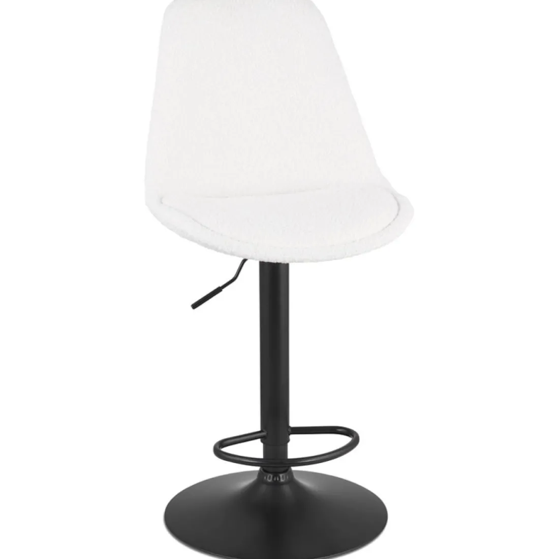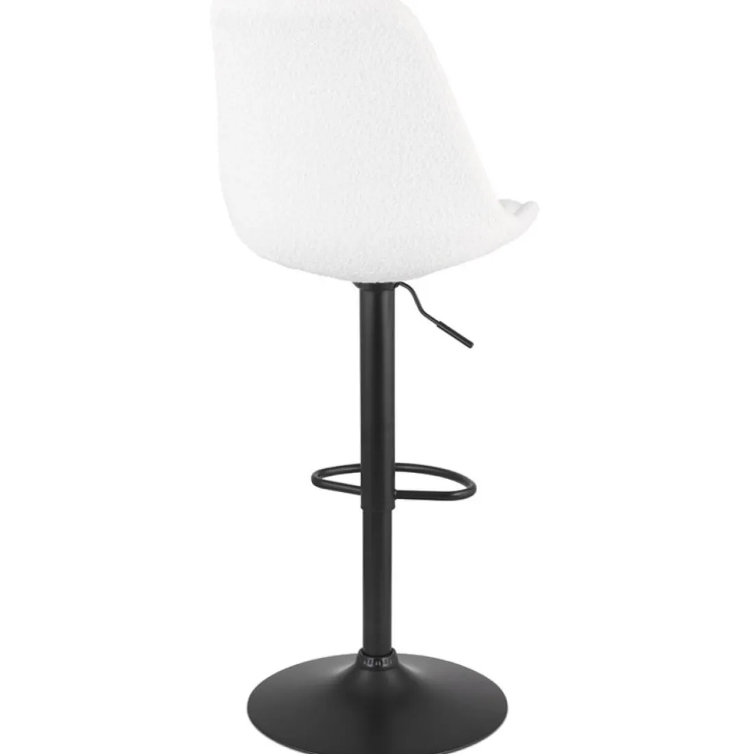 Caractéristiques Tabouret réglable ‘ROSITA’ en tissu bouloché blanc et pied en métal noir