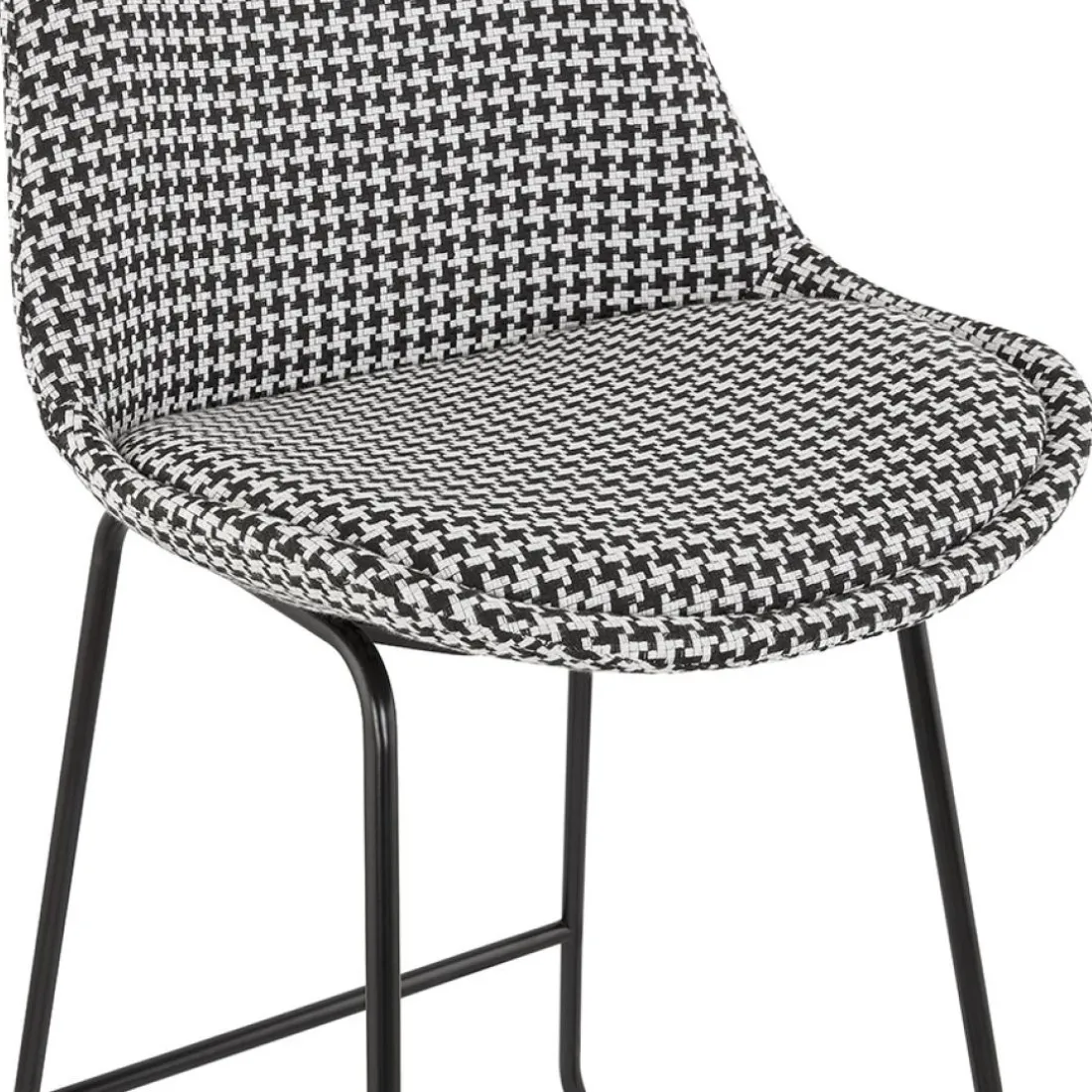 Caractéristiques Tabouret snack mi-hauteur ‘BULLY MINI’ en tissu pied de poule et pieds en métal noir