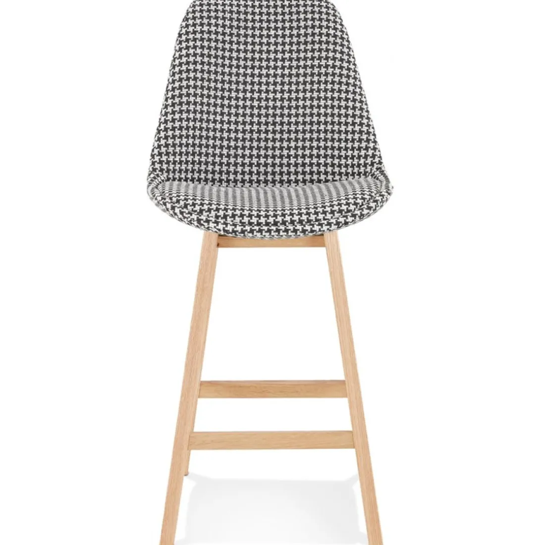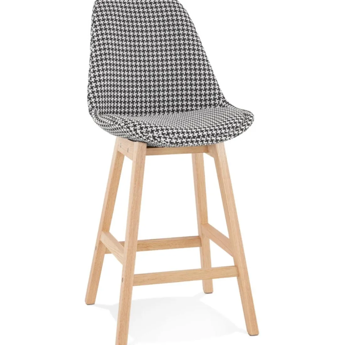 Caractéristiques Tabouret snack mi-hauteur ‘MORISS MINI’ en tissu pied de poule et pieds en bois naturel