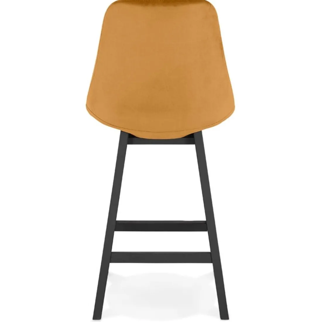 Caractéristiques Tabouret snack mi-hauteur ‘MORISS MINI’ en velours moutarde et pieds en bois noir