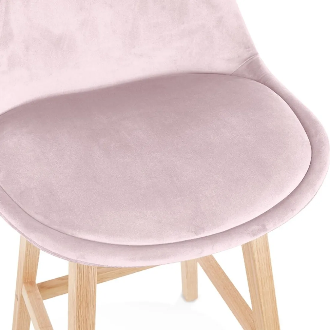 Caractéristiques Tabouret snack mi-hauteur ‘MORISS MINI’ en velours rose et pieds en bois naturel