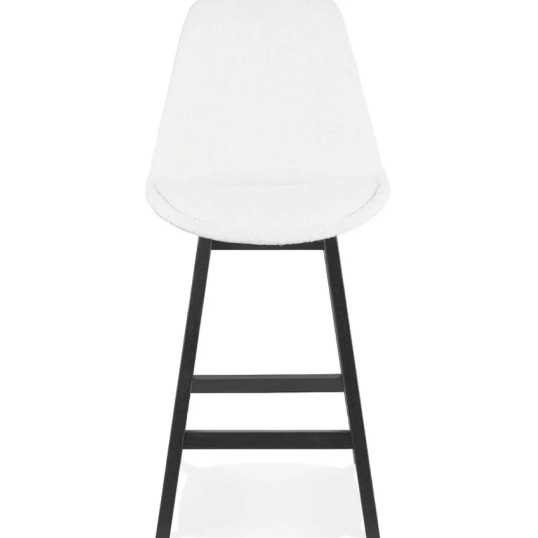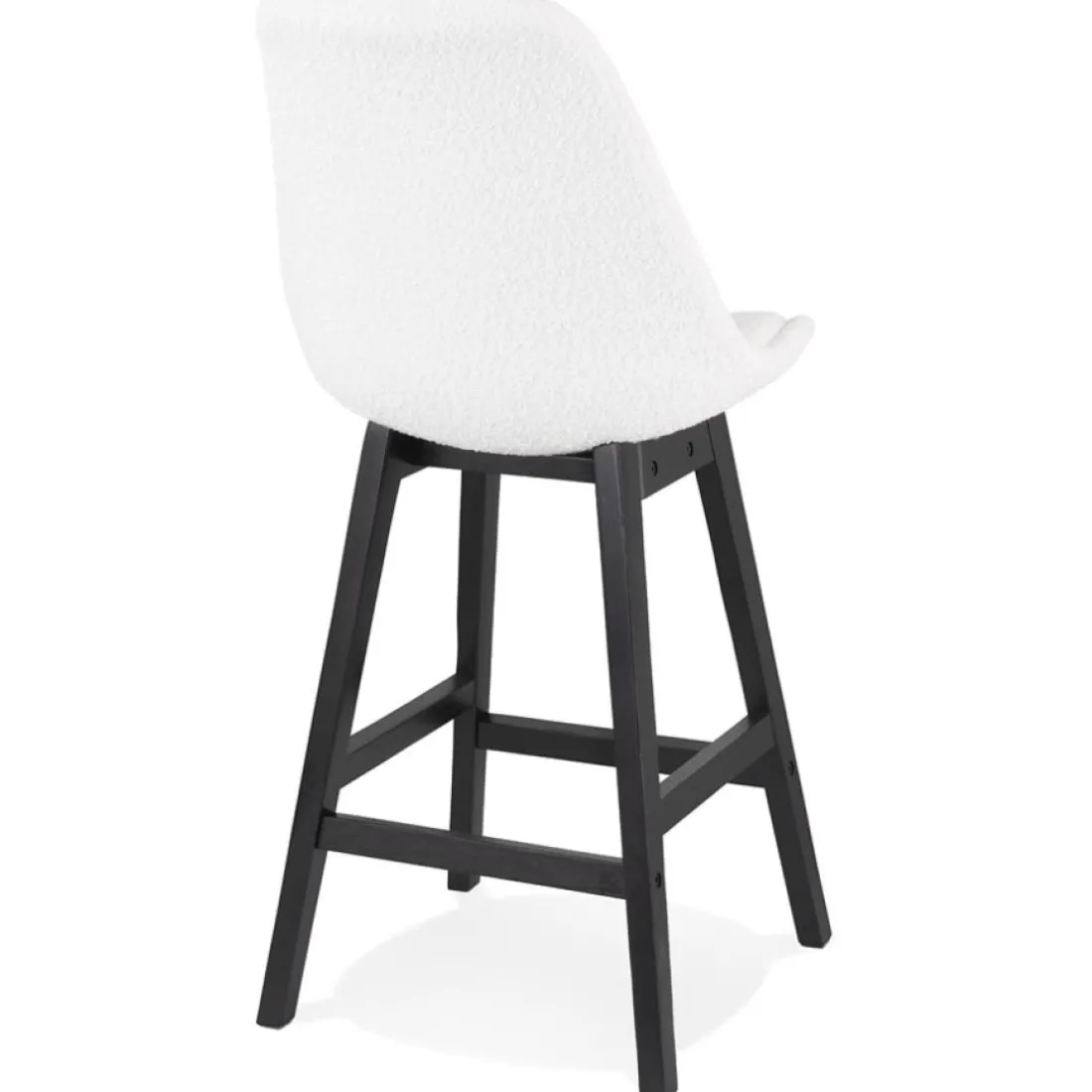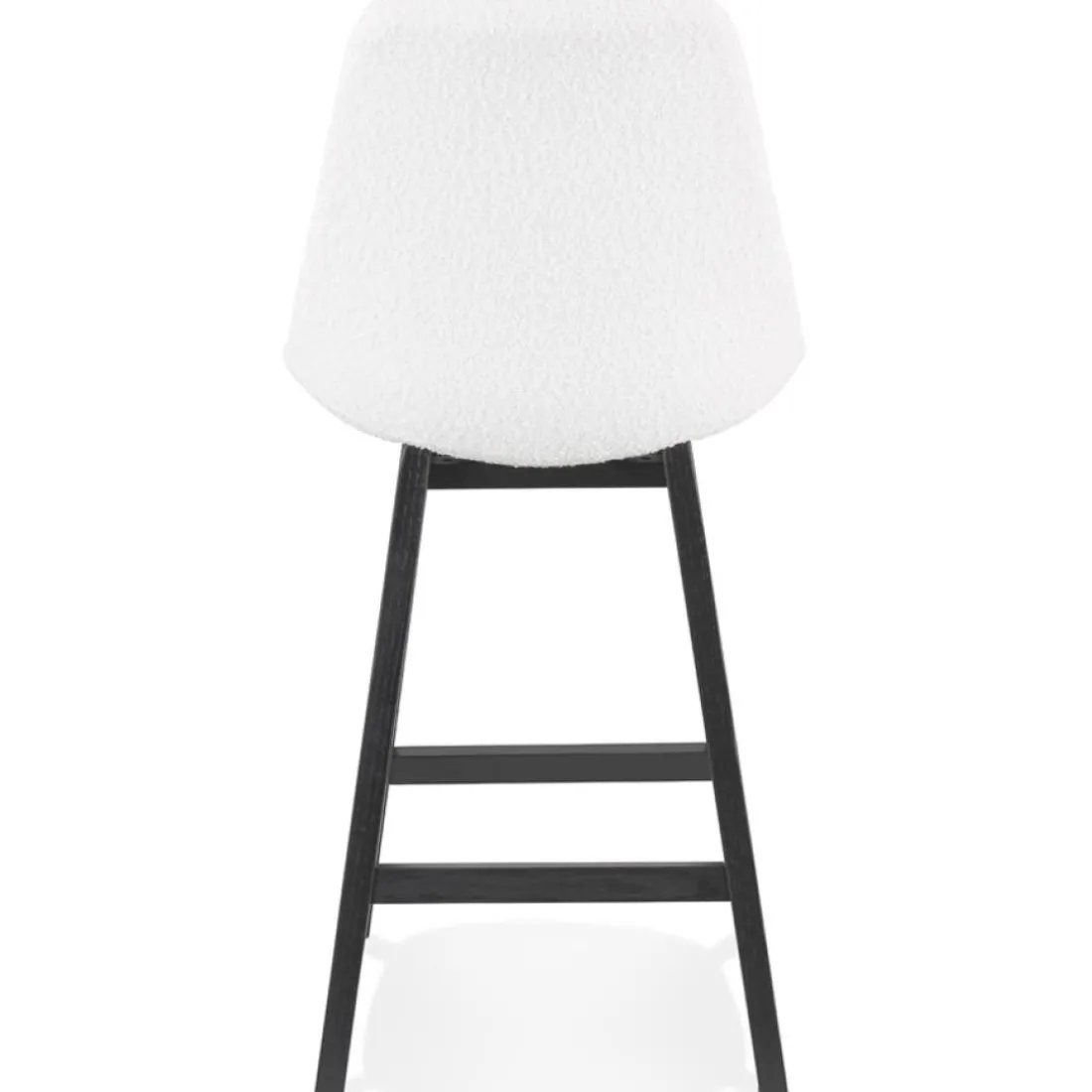 Caractéristiques Tabouret snack mi-hauteur ‘SANDRA MINI’ en tissu bouloché blanc et pied en bois noir