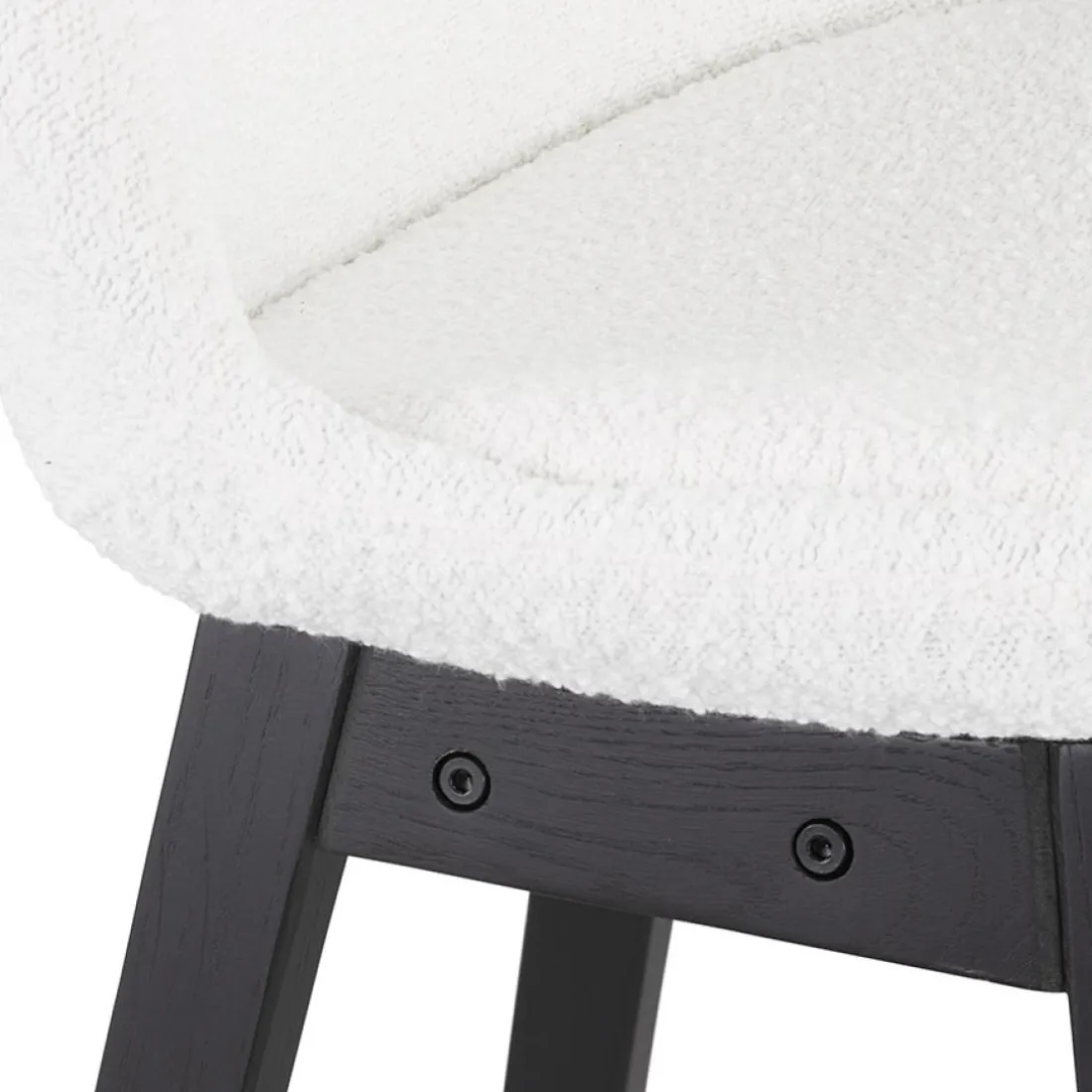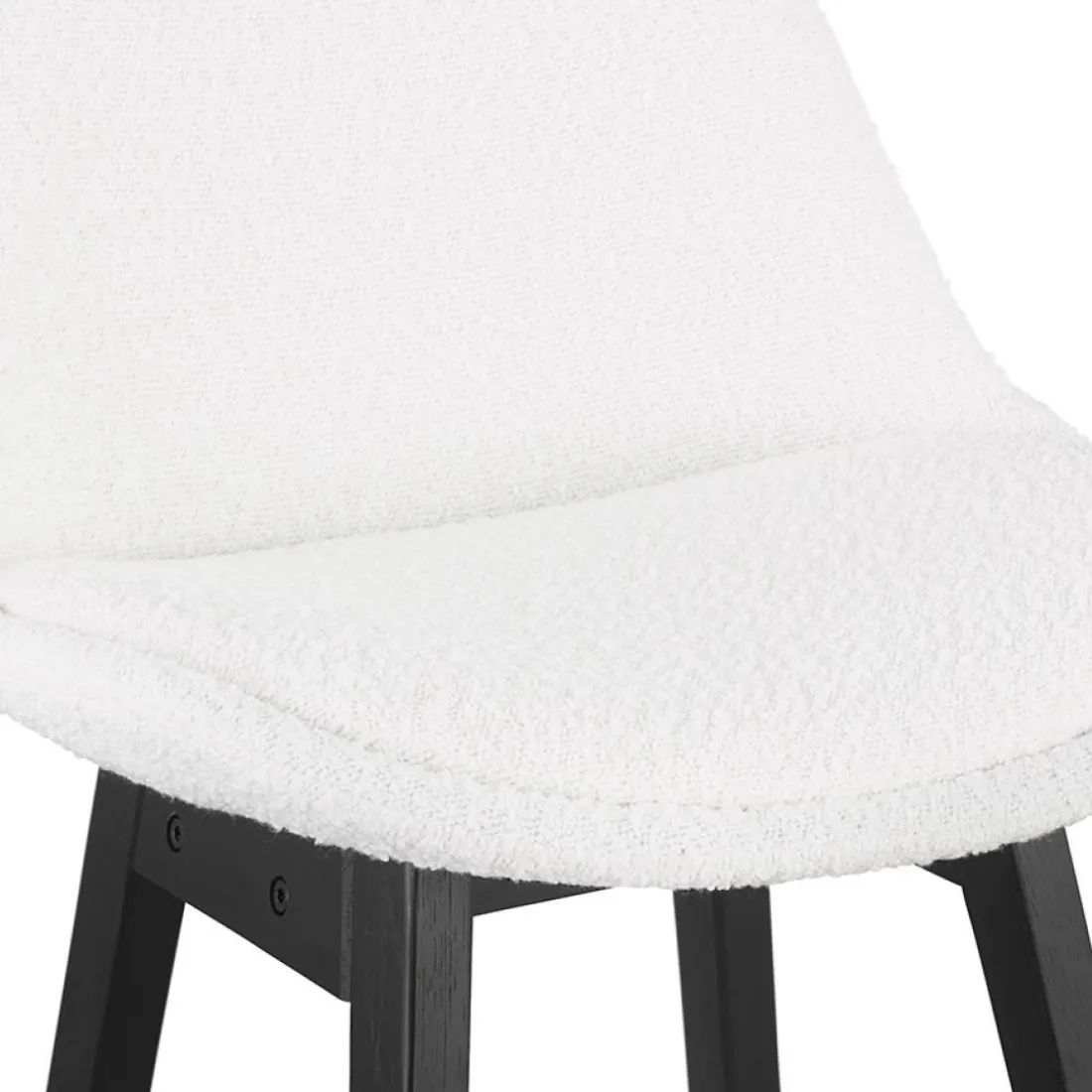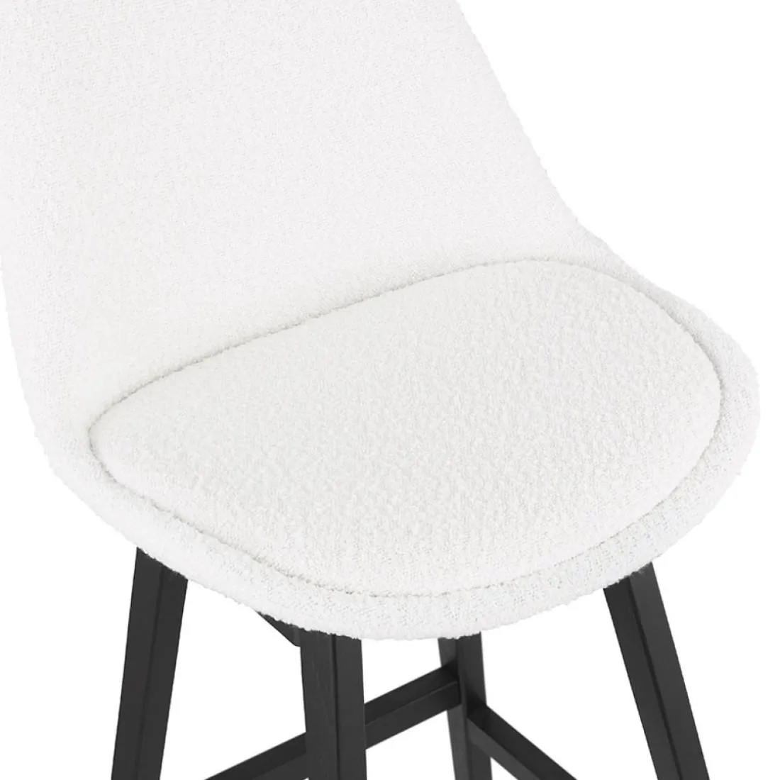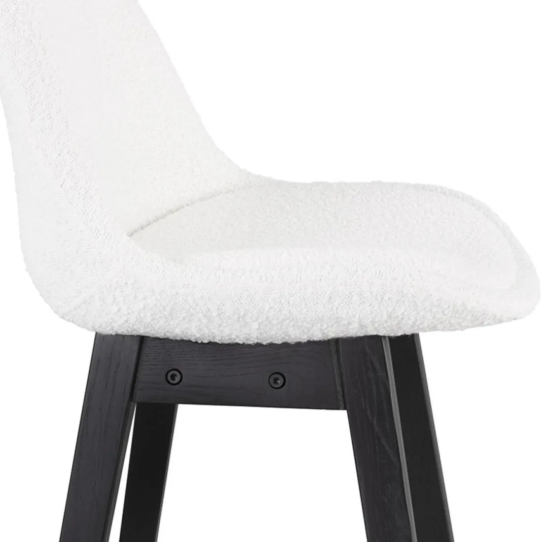 Caractéristiques Tabouret snack mi-hauteur ‘SANDRA MINI’ en tissu bouloché blanc et pied en bois noir