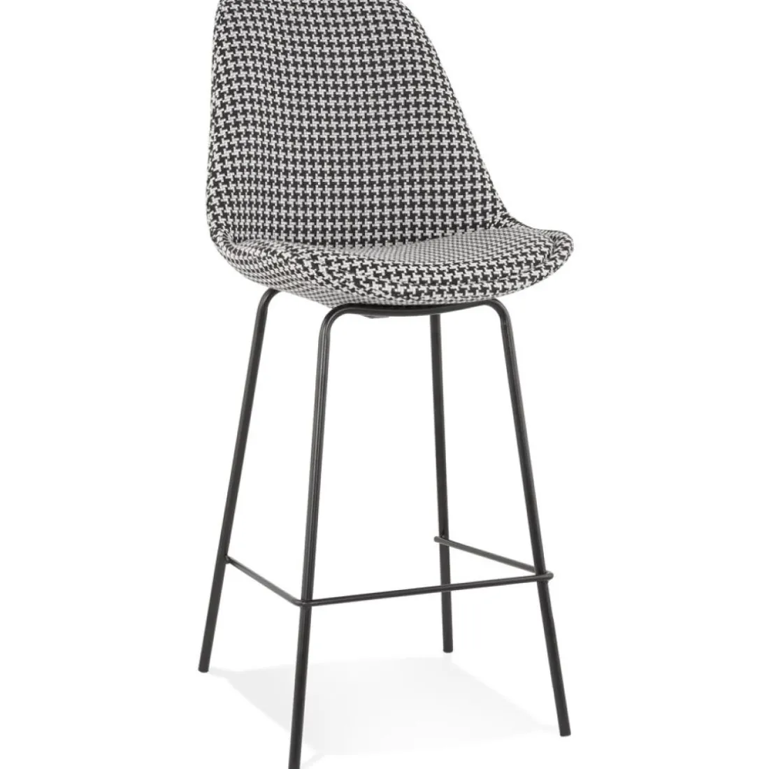 Caractéristiques Tabouret snack mi-hauteur ‘SPARK MINI’ en tissu pied de poule et pieds en métal noir