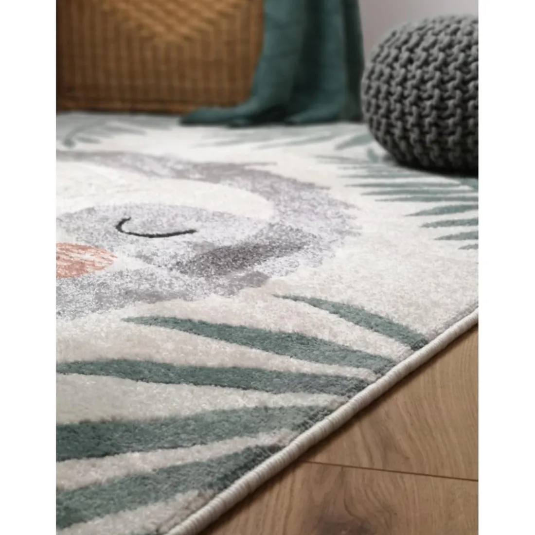 Craquez pour le look ultra-mignon de ce Tapis Enfant Paresseux 170x120cm AKIKO ! À l’effigie d’un paresseux, il permettra de créer un univers adapté à la chambre de votre enfant. Il sera également utile pour apporter une touche chaleureuse et servira même de tapis de jeu.