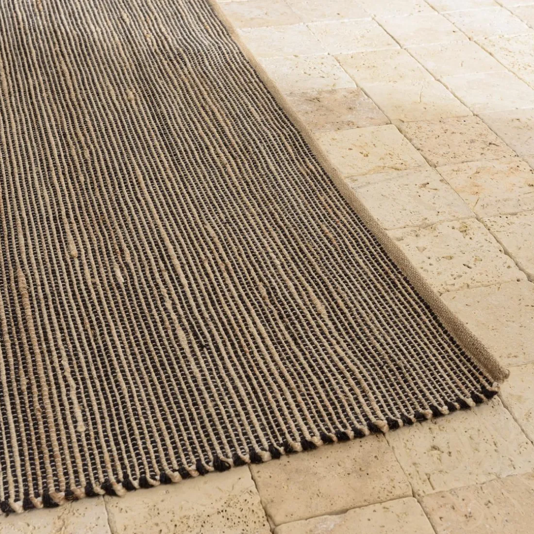 Caractéristiques Tapis rectangulaire en jute et coton couleur sable et noir QUENTIN